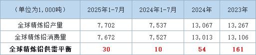 9月24日(周三),国际铅锌研究小组(ILZSG)公布的数据显示,2025年1-7月全球铅市场供应过剩量为30,000吨,而上年同期的供应过剩量为10,000吨。