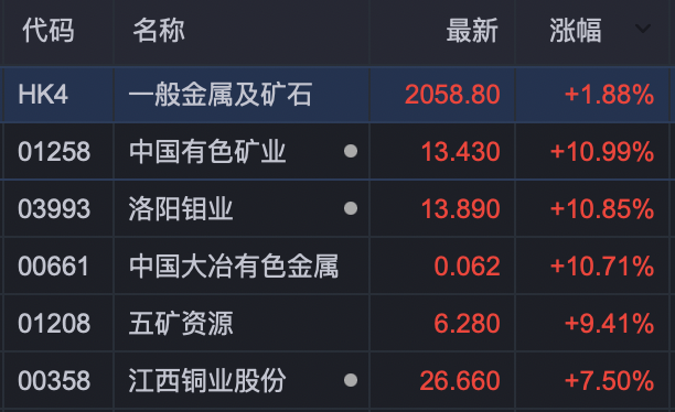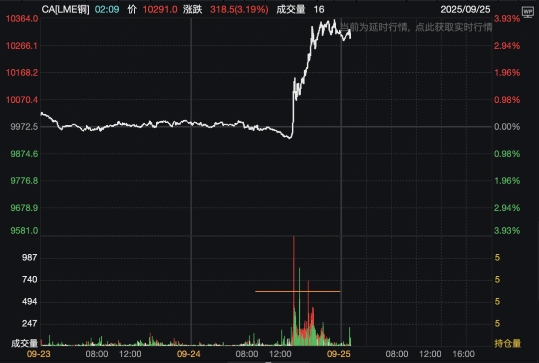 9月25日早盘,A股三大指数集体低开后走高,截至发稿,深证成指、创业板指已翻红。创业板指突破3200点再创3年多新高,年内累计涨幅超50%。 有色金属板块大爆发。 A股有色金属板块高开,精艺股份、北方铜业涨停,耐普矿机、洛阳钼业、江西铜业、铜陵有色、云南铜业纷纷高开。 港股有色金属板块盘初走高,截至发稿,洛阳钼业、中国有色矿业、中国大冶有色金属涨超10%,江西铜业股份、五矿资源、中国中冶等跟涨。 消息面上,矿业巨头自由港麦克莫兰公司(Freeport-McMoRan Inc.)称其位于印尼的格拉斯伯格(Grasberg)矿区遭遇泥石流,确认两名工人死亡,目前仍有五名员工下落不明,搜救仍在进行。为了优先进行搜寻,该矿区的采矿作业已自9月8日起暂停。该矿场是全球最大的金铜矿之一,约占全球铜矿供应的3.2%。消息发布后,伦敦铜期货合约大涨。 |