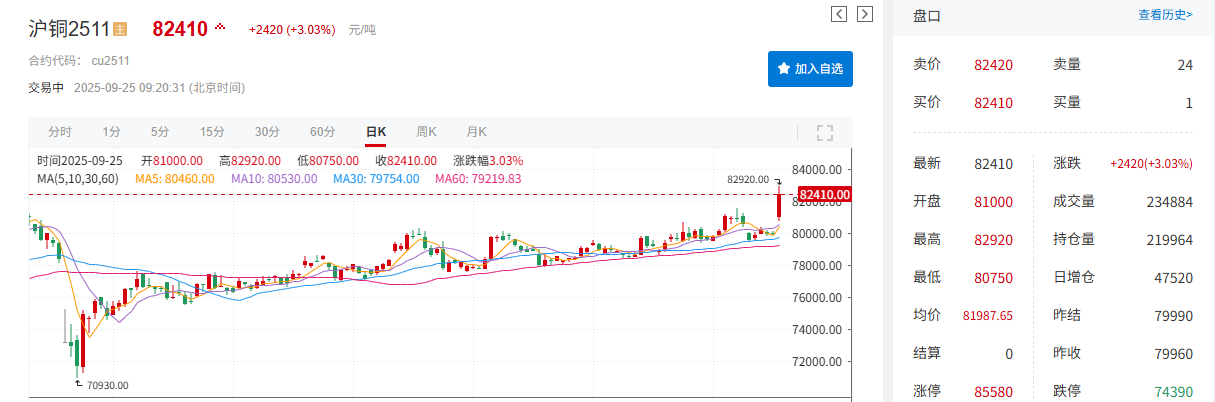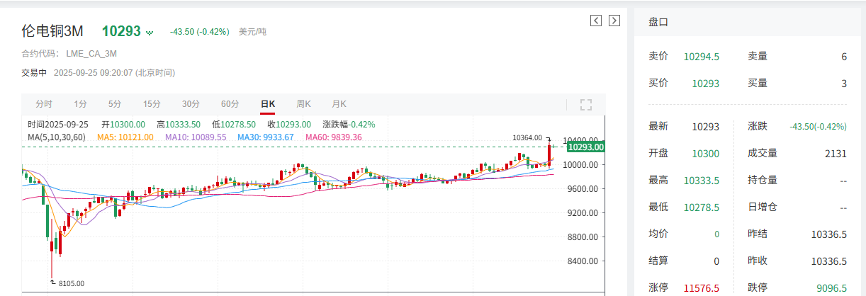 SMM9月25日讯: 自由港宣布印尼Grasberg矿遭遇不可抗力,预计印尼自由港2026年的产量可能比事件前的预估低约35%;叠加加拿大Hudbay矿业因秘鲁局势动荡暂时关闭了Constancia选矿厂引发了市场对铜供应链的担忧,隔夜伦沪铜均飙涨,最终伦沪铜均以逾3%的涨幅报收。9月25日早盘,伦铜继续在高位震荡,沪铜延续隔夜的涨势,截至9月25日9:20分,伦铜跌0.42%,报10293美元/吨;沪铜涨3.03%,报82410元/吨,盘中刷新自3月26日以来的新高至82920元/吨。 》点击查看SMM期货数据看板 消息面 自9月8日以来,Grasberg发生矿泄,事件发生已有两人死亡,五人失踪。该事件导致全球第二大铜矿停产两周,且市场开始交易其更大的影响。印尼自由港公司2026年的产量可能比此前预估低35%(此前预估为17亿磅铜,黄金160万盎司)。》点击查看详情 9月24日,加拿大矿业公司 Hudbay Minerals 宣布,由于秘鲁首都利马及全国多地抗议导致局势动荡,其位于秘鲁南部的 康斯坦西亚选矿厂(Constancia mill)已临时停产,非必要人员也已撤离。公司强调,停产措施出于安全考虑,并表示正持续评估当地局势,以保障员工与资产安全。该矿区是Hudbay在秘鲁的重要铜业务核心之一,停产引发外界对供应链的担忧。》点击查看详情 基本面 近期铜精矿现货市场成交活跃度较低 》点击查看SMM金属铜现货价格 》点击查看SMM金属现货历史价格走势 9月19日SMM进口铜精矿指数(周)报-40.8美元/干吨,较上一期的-41.3美元/干吨增加0.5美元/干吨。20%品位内贸矿计价系数为95%-97%。近期铜精矿现货市场成交活跃度较低,成交结果寥寥。 现状及后市 现货市场方面:随着海内外铜价的飙涨,下游消费受抑,9月24日上午现货市场交投清淡。近期下游暂未表现出明显的节前备库动作,多维持刚需采购。 》点击查看SMM金属产业链数据库 库存方面:截至9月22日周一,SMM全国主流地区铜库存环比上周四减少0.44万吨至14.45万吨。9月23日LME电解铜库存减少200吨至144775吨,LME铜库存近期整体处于去库态势;9月24日上期所仓单库存减少308吨至27419吨;9月24日COMEX铜库存为318,229短吨,入库904短吨,出库1,061短吨,净减少157短吨。 对于铜的后市,宏观方面需关注美国PCE物价指数变化和美联储官员的讲话对美联储未来利率路径的指引,以及中国9月官方制造业PMI等数据。目前在美联储上周如期降息25个基点之后,下一次美联储议息会议的节点在10月底,短期海外宏观对铜价的影响转弱,市场重新回归基本面的交易逻辑。而自由港宣布印尼Grasberg矿遭遇不可抗力之后,使得本就供应偏紧的铜原料供应再次触发了市场的紧张情绪,而在Grasberg矿短期复产可能偏低的情况下,铜供应端口对铜价的支撑变强。而需求端口,铜价高企抑制了下游的消费需求,不过,节前刚需补库或将使得铜消费存有一定的韧性。受基本面的支撑,预计铜价短期或将继续偏强运行。此外,铜金油齐舞的局面在期货市场并不鲜见,在贵金属迭创新高目前仍在高位徘徊之际,需警惕部分在贵金属市场获利了结的资金对铜等有色金属价格的炒作。 机构声音 高盛表示,矿业巨头Freeport McMoRan印尼子公司Grasberg矿山停产意味着对2025年12月伦敦金属交易所(LME)铜价9700美元/吨的预测风险偏向上行,预计铜价将稳定在10200至10500美元/吨区间;对2027年前铜价的长期看涨预测为每吨10750美元。 光大期货表示:昨晚Freeport McMoRan印尼Grasberg矿难事件发酵,该事件始于9月8日,此前市场认为影响偏短期,但昨晚Freeport预计最早要到2027年才能恢复事故前的生产水平,2026年铜金产量较此前预期下降约35%(约27万吨),2025年四季度销量也将大受影响,这恐对中长期铜供应造成一定影响,该事件影响在于当前市场预期铜矿供应持续紧张的情况下边际的意外减量,铜价顺势向上突破,这也是铜在近一年较低波动率下的向上突破,有望带动四季度铜均价大幅上升,建议投资者顺势而为,逢低做多为主。另外,投资者应关注Comex与LME铜以及内外价差,观察市场情绪的反馈。 正信期货指出:昨日夜盘铜价高开高走,铜价增仓约5万手,价格接近83000一线。Grasberg矿难早在9月8日已经发生,昨日宣布不可抗力,下调明年产量目标,该矿山自2021年爬产放量后成为全球产量前五铜矿,印尼最大铜矿,年产矿产铜70万吨左右,2026产量目标77万吨,如果按公告影响,影响产量26万吨左右。从供需角度看,今明两年铜矿产量增速或将进一步下调,此前预期3%左右增速,可能会进一步下调至2%,无法与精炼铜产量7%增速匹配,加剧矿冶矛盾,导致继续形成铜矿原料紧张,交割品宽松的局面,产业利润继续向铜矿采选行业集中,关注铜矿股票资产。从价格影响来看,大矿山的不可抗力短期让铜矿紧张预期进一步加深,铜价事件性冲击上涨,但目前交割品仍然过剩,需求尚未启动,铜价仍然处于长期中枢抬升,中期区间波动的过程,短期关注事件性交易的波动率拐点,节前备货谨慎,做好库存保值。 花旗9月初将伦铝2027年平均价格预测上调至3500美元/吨,此前为3000美元/吨。花旗预计到2026年底铜价将上涨至11000美元/吨,保持看涨态度。 中信证券研报指出,近三年国内铜矿板块PE长期运行在10-15x,今年以来板块持续提估值,与供给增速下滑、国内需求强劲有密切关系。展望后市,预计国内铜矿板块在盈利和估值两方面将迎共振:1)年内供需进一步改善为盾,旺季效应和宏观暖风为矛,25Q3-Q4铜价有望冲击10500美元/吨,预计铜价中枢上移将促进企业盈