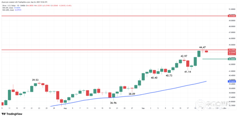 【华通白银网9月25日讯】• 以美元计价的白银在多年高位后跌至44.47美元下方;交易员现在正在等待个人消费支出数据和美联储降息的更明确消息。 • 白银的近期支撑位位于42.80美元,多头在通胀和政府停摆担忧之前捍卫该区域。 • 美元走强和美国国债收益率上升未能影响白银的看涨前景和防御仓位。 美国银价跌至44.50美元下方,因交易商关注美联储降息和个人消费支出数据 (白银日线图) 现货银价周三小幅走低,在触及多年高位44.47美元后,暂停在关键阻力位下方。此次回调反映的是盘整阶段,而非反转,因市场正在为一系列重大经济事件做准备,包括周五的个人消费支出(PCE)通胀数据,以及对政府可能停摆的担忧。银价格为43.94美元,下跌0.11美元跌幅-0.24%。 短期范围目前从41.14美元延伸至44.47美元,42.80美元的50%回撤位为当前的支撑位。在此下方为41.14美元、40.73美元和约40.40美元水平,逢低买入兴趣依然强劲。50日移动均线位于39.57美元,并继续锚定上升趋势。 美联储信号和美国国债收益率继续支撑白银 (黄金日线图) 在与美联储有关的活动中,黄金往往成为焦点,而白银则一直是顺风顺水,既受益于作为高贝塔值贵金属,又受益于电气化和光伏发电的结构性需求。美联储主席鲍威尔最近的言论标志着一种没有双赢的政策,指出通胀风险为上行,就业风险为下行。 在美联储上周降息之后,交易员预计今年还会有两次降息25个基点,10月和12月的降息概率分别为93%和79%。 收益率对即将到来的数据仍然敏感,10年期美国国债收益率升至4.137%,30年期美国国债收益率升至4.745%,短期内限制了白银的上行空间,但未能阻止长期的看涨行情。 美元指数反弹未能抑制贵金属需求 (美元指数) 美元指数周三上涨0.5%,至97.745,较早前的疲软有所反弹。不过,白银的反弹表明,避险仓位依然完好无损。尽管美元走强,但持续的地缘政治紧张局势和温和的美联储预期为白银提供了有利因素。尽管企业信心不断恶化,但白银仍站稳脚跟,反映出全球更广泛的不确定性。 数据驱动的设置:个人消费支出通胀的焦点 交易员们现在关注的是周五的个人消费支出这一美联储偏爱的通胀指标,这可能会加强或削弱进一步降息的理由。环比0.2%的疲软数据可能会给美元带来压力,并重新点燃白银和黄金的上涨势头。此外,对美国政府可能关门的担忧令投资者保持警惕,资金纷纷转向实物资产。 白银展望:看涨41.14美元上方,看向49.81美元 银价仍处于41.14美元上方的看涨技术结构,买家逢低进场。突破44.47美元将为下一个主要上行目标49.81美元扫清道路。 尽管周五通胀数据公布前料将出现盘整,但结构性需求、美联储政策调整和地缘政治风险继续支撑买盘。在41.14-42.80美元区间守住之际,交易商应保持乐观态度。 截止北京时间09:40,华通现货白银定盘价报10320元。 白银网 |