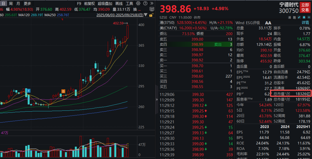 创业板指今天(9月25日)上午再度大涨,盘中突破3200点,再创阶段新高。其中龙头股宁德时代股价一度突破400元关口,总市值突破1.8万亿元,超越贵州茅台。 创业板指大涨 A股市场今天再次出现一定分化,上证指数、 北证50指数表现相对疲弱,创业板指和科创50指数走势强劲。截至中午收盘,上证指数上涨0.16%,深证成指上涨1.14%,创业板指上涨2.22%。 创业板指盘中涨幅一度达2.5%,再创阶段新高。创业板指成份股中,宁德时代股价一度突破400元关口,总市值突破1.8万亿元,超越贵州茅台。 其他创业板指成份股中,昆仑万维大涨10.22%,当升科技大涨8.71%。 从行业板块和赛道来看,若按照申万一级行业划分,传媒、电力设备、有色金属、计算机、通信板块涨幅居前;交通运输、农林牧渔、煤炭、纺织服饰等板块表现疲弱。 其他热门股方面,上纬新材连续2个交易日20%涨停,年内涨幅接近1900%。 消息面上,9月24日晚间,上纬新材公告称,上海智元恒岳科技合伙企业(简称“智元恒岳”)计划要约收购公司37%的股份,要约收购价格为7.78元/股,预计所需最高资金总额为11.61亿元。此次要约收购期限共计30个自然日,即9月29日至10月28日。 公告指出,上海智元恒岳科技合伙企业认同上纬新材长期价值和A股资本市场对科技创新和产业创新的服务能力,拟通过此次要约收购进一步增强对公司的控制权。 资料显示,智元恒岳是由智元机器人关联公司上海智元新创技术有限公司及其核心团队共同出资设立的持股平台。9月24日收盘,上纬新材涨停,报110.08元/股,为此次要约收购价的14倍。 值得一提的是,就在9月23日晚间,上纬新材公告宣布股份转让完成过户登记,控股股东变更为智元恒岳与邓泰华。 3只新股悉数大涨 今天A股市场有3只新股上市,悉数大幅上涨。 新股建发致新上午盘中涨幅一度超过500%。 招股资料显示,建发致新作为全国性的高值医疗器械流通商,主要从事医疗器械直销及分销业务,并为终端医院提供医用耗材集约化运营(SPD)服务。在医疗器械产业链中,公司主要承担医疗器械的流通职能,是串联生产厂商、经销商、终端医疗机构的枢纽,在产业链中起到承上启下的重要作用。 新股联合动力上午盘中涨幅一度超过190%。 招股资料显示,联合动力致力于成为全球领先的智能电动汽车部件及解决方案提供商,公司主要产品涵盖新能源汽车电驱系统(电控、电机、三合一/多合一驱动总成)和电源系统(车载充电机DC/DC 转换器、二合一/三合一电源总成),并实现了减速器、高压配电单元、定子组件、转子组件、IGBT/SiC功率模组等各级部件模块的自主开发、生产。公司依托涵盖系统集成、功能组件整合、关键部件设计、材料分析的多层次核心技术,面向新能源汽车动力域打造了全平台、全自主、灵活集成的产品序列。 另一只新股锦华新材上午盘中涨幅一度超过160%。 招股资料显示,锦华新材主要从事酮肟系列精细化学品的研发、生产和销售,主要产品包括硅烷交联剂、羟胺盐、甲氧胺盐酸盐、乙醛肟等。公司为国内硅烷交联剂、羟胺盐细分领域的龙头企业。 公司硅烷交联剂产品主要作为关键原料用于生产有机硅密封胶和胶粘剂,终端产品广泛应用于建筑建材、能源电力、电子以及新能源汽车等其他领域,为国家战略性新兴产业中新材料领域的重点产品;公司羟胺盐产品主要用于生产广谱高效低毒农药和抗菌药物、高效环保金属萃取剂、新型离子交换树脂和绿色环保型染料;公司甲氧胺盐酸盐产品主要用于生产广谱高效低毒农药和抗菌药物;公司乙醛肟产品主要用于生产广谱高效低毒农药。 港股恒生科技指数走强 今天上午港股市场整体表现较为温和,恒生科技指数表现相对较好,该指数盘中涨约2%。 恒生科技指数成份股中,华虹半导体、京东集团-SW盘中涨幅均超过6%,百度集团-SW、哔哩哔哩-W等盘中涨幅居前。 校对:高源 |