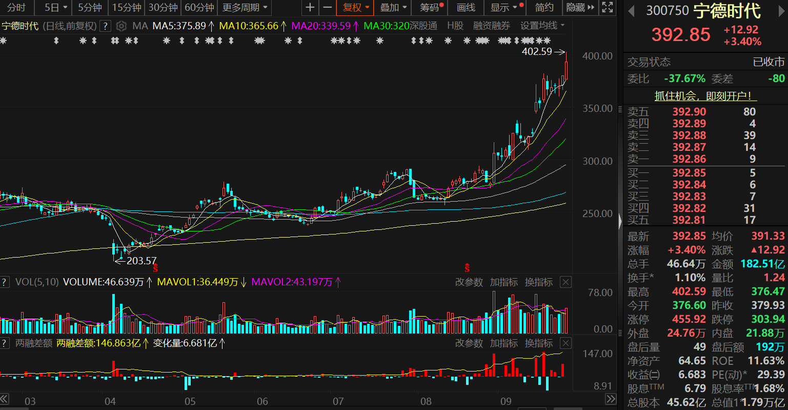 SMM 9月25日讯:9月25日,宁德时代AH股价一同震荡上涨,其A股临近午间收盘时盘中最高涨幅一度逼近6%,盘中最高触及402.59元/股,股价续刷历史新高,H股股价盘中涨逾5%,最高触及535港元/股,AH股总市值突破1.84万亿元,超越贵州茅台1.80万亿元的总市值。 对于宁德时代股价拉涨的原因,有市场人士分析称,主要是9月迎来动力电池交付旺季,叠加近期储能电池需求爆发等影响。 动力电池方面,据SMM上周调研显示, 9月主机厂积极备库,生产节奏较快,为传统车销旺季“金九银十”及年底冲量做准备。明年新能源车购置税全免变为减半,部分需求前置到今年年底。对应到动力电芯的需求来看,目前电芯厂的动力电芯库存平均为1.5-1.7月,下游主机厂需求旺盛,电芯厂排产积极。值得注意的是,商用车市场在下半年增长亮眼,较大的待渗透空间和更大的单车带电量使得各大电芯厂开始在商用车动力电池同步发力,排产显著增长。 储能电池方面, 8月国内储能中标总规模达7.80GW/22.95GWh,功率规模环比上升33.76%,新疆、内蒙古等地项目集中释放,其中独立储能贡献显著增量。考虑到北方地区入冬后施工受限,电芯企业将在9、10月加快项目交付,继续对排产形成支撑。尽管部分企业计划于近期投放新产能,但仍难以根本缓解供应偏紧的格局。政策层面,《新型储能规模化建设专项行动方案(2025—2027年)》明确提出,到2027年全国新型储能装机规模达180GW以上。截至2025年上半年,国内新型储能装机已达95GW,预计年底将超110GW。 而宁德时代作为全球知名的动力电池巨头,动力电池和储能电池业务在宁德时代的业务中的占比也逐步提升。2025年上半年,宁德时代动力电池系统、储能电池系统的营收合计占总营收的89.43%,前者占比分别为73.55%,后者占比达15.88%。 且宁德时代的动力电池和储能份额持续领先,据韩国研究机构SNE Research公布2025年1-7月全球动力电池装车量最新数据显示,宁德时代1~7月动力电池市场份额占比在37.5%左右,排名全球第一;储能电池方面,据媒体数据显示,1~6月宁德时代储能电池的产量也位居全球第一。 而近期,宁德时代方面同样利好频出,理想汽车9月18日与宁德时代签署五年全面战略合作协议并完成授牌仪式。双方将在电池安全、超充技术等方面展开深度合作,携手拓展国内外业务,共同推动电池技术创新和全球化布局。宁德时代将为理想汽车全系产品提供高性能、高安全、高品质的动力电池系统,包括但不限于三元锂电池、M3P电池、磷酸铁锂电池和钠离子电池等。 富临精工此前发布公告称,公司控股子公司江西升华与宁德时代签订《预付款协议》,宁德时代向江西升华支付共计15亿元预付款,用于锁定磷酸铁锂供应量,并支持江西升华布局原材料建设。此协议深化了双方在磷酸铁锂材料领域的战略合作,预计对公司经营业绩产生积极影响。 9月17日,中国华能集团有限公司与宁德时代新能源科技股份有限公司在福建宁德签署战略合作协议。根据协议,双方将在产品制造、新能源建设与运维、科研创新、核电产业等领域深化战略合作。 此外,对于近期大火的固态电池,宁德时代身为“行业一哥”同样有所布局,此前在被问及公司固态电池进展时其表示,公司非常重视固态电池,在固态电池领域已有10余年的研发积累,目前已组建了业内领先的研发团队,加大固态电池领域的投入,技术始终处于行业领先地位。目前,固态电池行业的科学问题已经基本解决,还有一些工程问题,离包括供应链在内的商业化还有一段距离。预计固态电池2027年将实现小规模量产,2030年有望实现规模化应用。 机构评论 摩根大通表示,宁德时代的储能电池需求超预期,导致供应紧张及价格上涨,因此将其2025年至2026年的盈利预测上调约10%,为市场最高预期。 9月23日,美银证券还就中国储能电池行业发布研报称,预计未来储能电池需求将受国内政策支持及海外市场增长带动保持坚挺,预计反内卷背景下,电池价格将趋于稳定。该行将宁德时代(03750.HK)目标价升至570港元,将中创新航(03931.HK)目标价升至35港元,两家企业同予买入评级。 中信里昂此前也发布研报数据称,公司目前的电动车和ESS生产均处于满载状态,需求强劲,尤其是海外ESS市场。预计2026至2027年电池出货量增加10%,该行上调2026及2027年每股盈利预测各9%。重申宁德时代跑赢大市评级,升H股目标价至670港元。 |