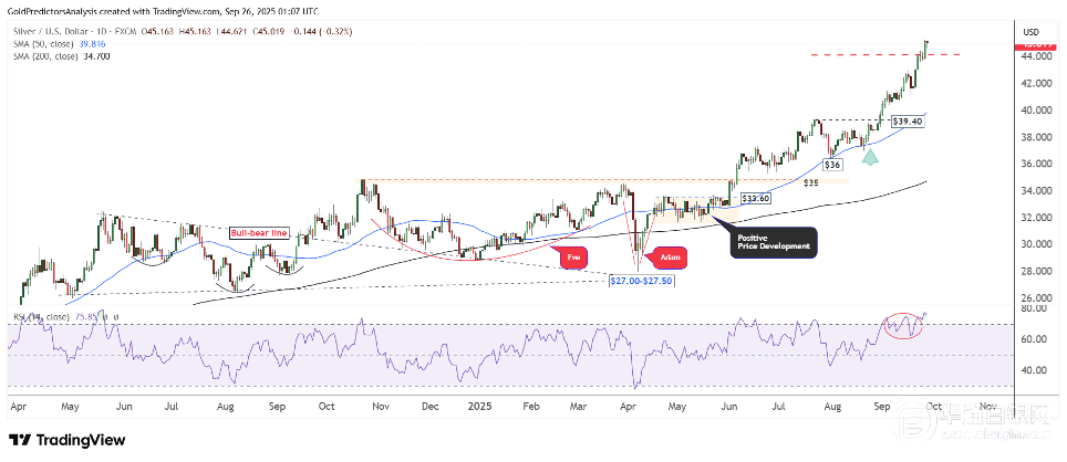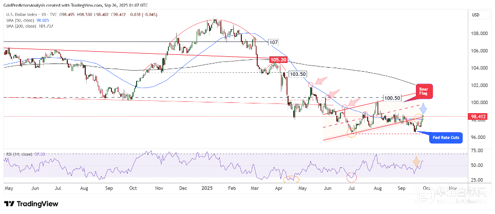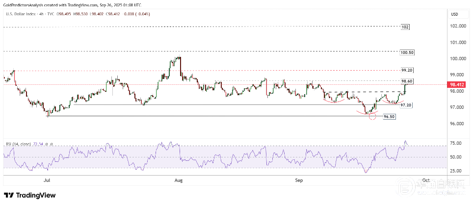 【华通白银网9月26日讯】卡斯货运指数(Cass Freight Index)在2025年8月跌至1.017,为过去10年的最低水平之一。由于整个制造业和零售业的需求疲软,货运量继续下降。 下图显示,这种急剧下降与2008年和2020年经济衰退期间的情况相似。表明经济收缩,商业活动减少。货运指数走弱反映出GDP增速放缓和信贷环境收紧。 这些数据支撑看涨黄金的观点。货运量的下降预示着潜在的经济衰退。经济疲软增加了美联储进一步降息的可能性。利率下降和不确定性上升推动了对黄金的需求。随着工业活动放缓,投资者越来越多地转向保值。脆弱的货运市场加强了黄金和白银价格在2025年第四季度的积极前景。 金价创下3791美元的历史新高,随后回落以建立新的支撑。突破这一水平可能会引发下一波向4000美元的上涨。 黄金技术分析 黄金日线图-看涨盘整 现货金的日线图显示,金价触及3791美元的纪录高位,目前正在高位盘整。在3600美元关口上方的盘整表明,黄金将继续看涨,一旦支撑位得到确认,该货币对可能会转向上行。 在纪录高位附近的停顿也反映了极度超买的情况,预示着在下一次上涨之前可能出现短期回调。强劲支撑位仍在3,600-3,650美元区域,该区域的任何回调都可能被吸收。 黄金4小时图表 现货金4小时走势图显示,金价突破上行通道,在3800美元附近创下历史新高。最近在该区域的回调是因为超买。市场目前正在企稳,并在寻找下一个支撑位以恢复其上升趋势。 白银技术分析 白银日线图-强劲的看涨势头 现货白银日线图显示,银价已突破44美元水平,进入45美元区域。整体价格走势仍然看涨,表明未来将进一步上涨。 虽然涨势已将白银推入超买区域,但近期白银市场的强势可能会导致其忽视超买状况,并将价格推向50美元。银价的任何回调都可能带来强劲的买入机会,下一目标是50美元区域。 白银4小时图表-上升扩散楔形 现货白银4小时图显示,银价在45美元附近的上升楔形形态顶部达到了强劲阻力位。尽管存在阻力,但银价仍持稳,显示小幅回调迹象,在纪录高位附近盘整。 这种价格行为表明了强劲的潜在动力。如果确认突破45美元区域,可能会引发向50美元区域的急剧上涨。 美元指数技术分析 美元日线图-逆转 美元指数日走势图显示,在美联储降息后,美元指数已从96.50开始强劲反弹。目前正接近98.60阻力位。这一阻力标志着看跌旗形形态的上边界,并暗示着突破98.60可能会延伸至100.50水平。 反弹反映了长期支撑的影响。然而,整体走势仍然强烈看跌。这种反弹可能为交易者提供了一个抛售机会,他们希望与长期的下行趋势保持一致。 美元4小时图表 美元指数的4小时图显示,美元指数已经从96.50的长期支撑位强势反弹,目前正在向98.60水平移动。未能跌破96.50并在该区域上方形成的看涨结构,将表明短期看涨趋势。如果美元指数突破98.60,则可能会将升势延伸至100.50水平。 截止北京时间09:40,华通现货白银定盘价报10498元。 美国时间9月25日,全球最大白银ETF——iShares Silver Trust的白银持仓量为15390.07吨,较前一交易日减少79.05吨。 白银网 |