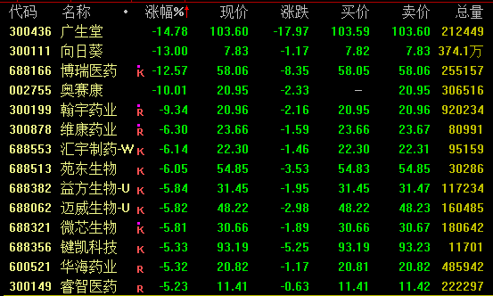 A股今日(9月26日)回落走低,创业板指跌超2%;港股亦下挫,恒生指数跌超1%,恒生科技指数大跌近3%。 具体来看,两市股指盘中震荡回落,尾盘加速下行,创业板指大跌超2%。截至收盘,沪指跌0.65%报3828.11点,深证成指跌1.76%报13209点,创业板指跌2.6%报3151.53点,北证50指数跌近2%,沪深北三市合计成交21664亿元,较此前一日减少2256亿元。 场内超3400股飘绿,医药板块下挫,广生堂、向日葵、博瑞医药等跌超10%;半导体板块回调,3连板的立昂微午后跌停;风电概念崛起,威力传动、湘电股份、宏盛股份等涨停;值得的注意的是,神马股份、易成新能、大有能源集体涨停;晶盛机电午后飙升,一度涨超15%。此外,今日登陆创业板的昊创瑞通收盘上涨190.8%报61.06元/股,盘中最高至75元/股涨幅达257%,以盘中最高价计算,该股单签收益达2.7万元。 港股方面,地平线机器人、小米集团跌超8%,金山软件跌逾7%,中芯国际跌逾5%,京东集团、阿里巴巴等跌超3%;小鹏汽车涨逾5%,华虹半导体涨逾3%。 医药板块跳水 医药板块今日大幅下挫,截至收盘,广生堂跌近15%,向日葵、博瑞医药等跌超10%,奥赛康跌停,翰宇药业跌超9%,药明康德A股跌近4%。 值得注意的是,博瑞医药近5个交易日已累计跌近40%。公司24日晚间提示,经自查,公司目前日常经营情况正常,未发生重大变化。市场环境或行业政策未发生重大调整,生产成本和销售等情况未出现大幅波动,内部生产经营秩序正常。公司未发现需要公司澄清或回应的媒体报道或市场传闻。 港股方面,凯莱英跌超7%,康龙化成、泰格医药等跌超5%。 消息面上,当地时间9月25日,美国总统特朗普在其社交媒体“真实社交”宣布,自10月1日起,美国将对多类进口产品实施新一轮高额关税。措施包括:对厨房橱柜、浴室洗手台及相关建材征收50%关税,对进口家具征收30%关税,对专利及品牌药品加征100%关税。 半导体板块回落 半导体板块今日回落走低,截至收盘,立昂微跌停,东微半导、概伦电子、瑞芯微、芯原股份等跌超6%。 消息面上,有报道称,特朗普政府正在考虑一项新的半导体政策,要求芯片公司在国内制造的半导体数量与其客户从海外生产商进口的半导体数量相同,如果公司未能长期保持这种1:1的比例,将面临大约100%的关税。 值得注意的是,立昂微此前已连续3个交易日涨停,公司25日晚间提示,公司股票价格近期涨幅较大,可能存在非理性炒作风险,可能存在短期涨幅较大后的下跌风险。公司目前生产经营正常,内部生产经营秩序正常。近期公司经营情况及内外部经营环境未发生重大变化,公司主营业务未发生变化,公司不存在应披露而未披露的重大事项。 风电概念逆市活跃 风电概念今日逆市上扬,截至收盘,威力传动20%涨停,华自科技涨超15%,太原重工、湘电股份、宏盛股份等均涨停。 国家能源局最新发布数据显示,截至8月底,全国累计发电装机容量36.9亿千瓦,同比增长18.0%。其中,太阳能发电装机容量11.2亿千瓦,同比增长48.5%;风电装机容量5.8亿千瓦,同比增长22.1%。 机构表示,二季度以来国内海风开工交付加速,预计三季度进入短期业绩兑现期。同时,发展“海洋经济”的政策氛围下,展望“十五五”,深远海示范项目有望加速推进,将有效支撑国内海风装机提振。国内风机大型化加速,且并网时间紧、规模大,造成与之配套的大型化零部件产能面临阶段性紧缺,议价能力提升带来零部件环节超额溢价。塔桩、海缆等国内产业链头部企业积极布局海外市场,部分企业的海外在手订单大幅增加,预计出海业绩弹性将逐步兑现。 责编:万健祎 校对:刘星莹 |