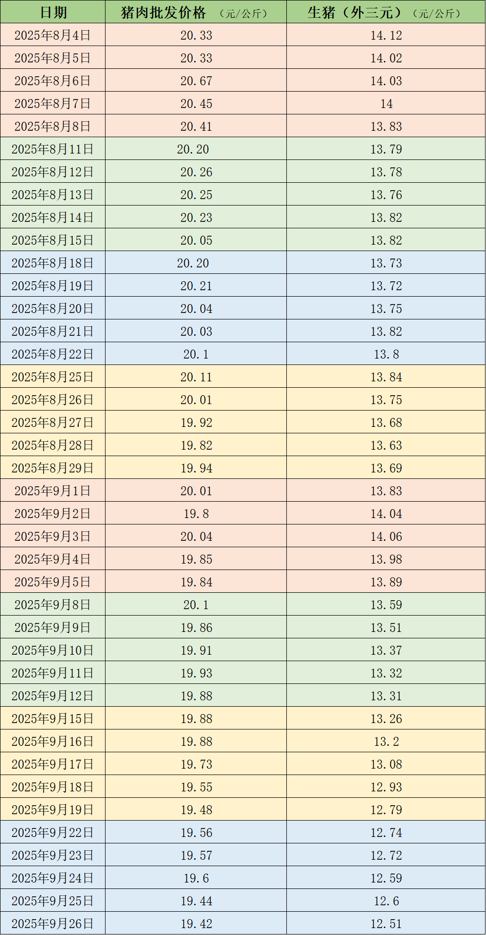 据农业农村部监测,9月26日,全国农产品批发市场猪肉平均价格为19.42元/公斤,与上周五(9月19日)的19.48元/公斤相比,下降0.3%。本周的平均价格为19.52元/公斤,与上周19.7元/公斤的均价相比,下降0.9%。 本周国内生猪价格呈下行趋势,周均价环比下跌。据中国养猪网的数据,9月26日,生猪(外三元)价格为12.51元/公斤,与上周五(9月19日)的12.79元/公斤相比,下降2.2%。从一周均价来看,本周生猪均价为12.63元/公斤,与上周13.05元/公斤的均价相比,下降3.2%。 ![]() 近期的猪肉和生猪价格。制表澎湃新闻 本周全国生猪交易均重止涨下滑。卓创资讯监测全国生猪平均交易体重为124.66公斤,环比微跌0.05%。本周分省份交易均重跌多涨少。部分省份养殖端执行减重政策,养殖端出栏节奏加快,带动出栏均重下滑。两广受台风天气影响,养殖端有提前出栏动作。而部分省份大场出栏偏少、价格较高,屠企转而收购低价散户猪源,生猪收购均重仍有上涨现象。未来一周养殖端或继续推行减重政策,但双节到来,市场备货意愿提升,部分前期压栏的猪源加速出栏,均重继续下滑空间或有限。本周国内生猪重点屠宰企业开工率环比上涨,周内平均开工率34.54%,环比上涨0.4个百分点。生猪出栏偏多,屠宰企业收购顺畅。需求方面,随着双节假期临近,同时气温下降,下游备货积极性提升,屠宰企业订单增加,支撑开工率上涨。月末进入备货高峰期,但假期初需求或减少,预计近期开工率或先涨后降。 9月24日,国家统计局发布2025年9月中旬流通领域重要生产资料市场价格变动情况。其中,生猪(外三元)价格为13元/公斤,与9月上旬相比,每公斤下降0.7元,下降幅度为5.1%。同日,广东省发改委消息称,根据广东省价格监测中心监测,9月23日全省平均猪粮比价为5.64∶1,连续三周处于5∶1~6∶1之间。进入广东省发展改革委等五部门联合印发《广东省完善政府猪肉储备调节机制做好猪肉市场保供稳价工作预案》设定的过度下跌二级预警区间。广东省将适时开展冻猪肉储备收储工作。 大地期货认为,双节消费有增量预期,但养殖端出栏相对积极,供应压力持续释放中,猪价短时或难见到太大反弹。四季度供大于求的逻辑仍在,近端依旧维持逢高偏空的思路,关注节后库存消化情况及投机需求表现。利润角度能繁产能调降意愿受限,但政策端去产能目标相对明确。企业端商品猪出栏进度稍显滞后,下旬出栏节奏有所加快,供给增量继续体现,近端出栏压力延续。双节备货叠加国储订单,宰量短期有望增量,需求端支撑力度有边际转强预期,但也要注意节后需求易出现惯性回落。近月养殖成本变化不大,利润主要受猪价主导。 卓创资讯预计未来一周全国行情或呈先降后微涨的态势。供应方面,目前养殖端生猪出栏积极性仍然较高,且部分大体重生猪不断释放,拉低生猪行情。而月末1-2日及月初1-2日部分区域出栏量或略有缩量,对行情有止跌提振的作用。需求方面,未来一周或进入国庆备货阶段,屠宰量有提升空间,而后期备货结束后宰量或短暂微跌,总体来看未来一周需求量或环比增加,利多行情。 (文章来源:澎湃新闻) |
