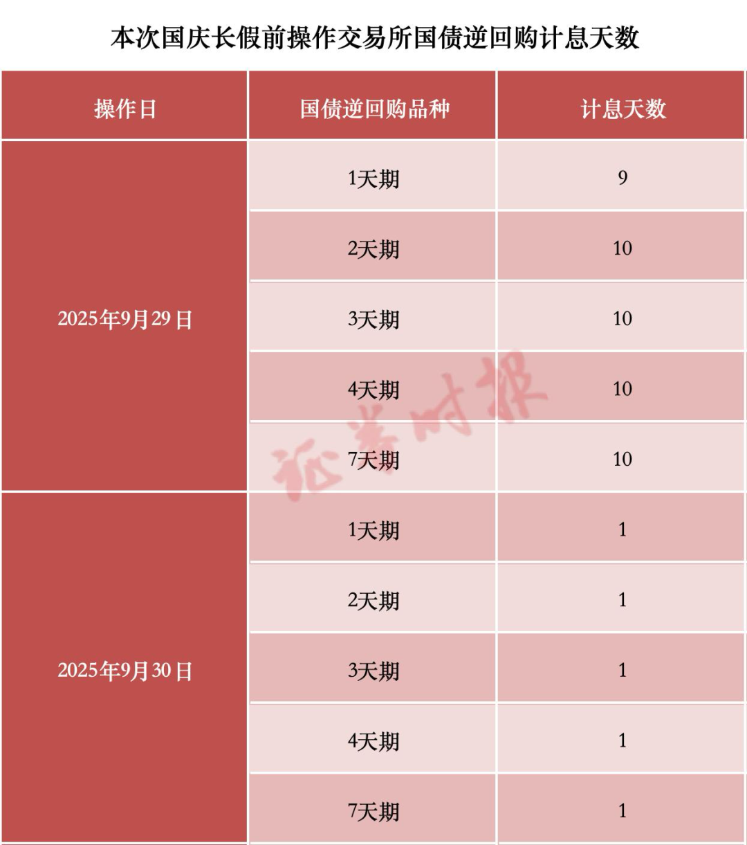 临近2025年国庆长假,沪深交易所国债逆回购收益率又开始大幅上涨,在计息天数方面也迎来比较好的窗口期。 根据交易所国债逆回购计息规则测算,今天(2025年9月29日)操作1天期至7天期国债逆回购,计息天数上较为划算。其中今天操作1天期国债逆回购计息天数达9天,操作2天期至7天期国债逆回购计息天数则多达10天。 沪深交易所国债逆回购收益率大幅上涨 今天上午,沪深交易所国债逆回购收益率开始大幅拉升。 行情数据显示,今天上午,近期一直比较低迷的沪市1天期国债逆回购品种(GC001)突然开始强劲上涨,盘中涨幅一度超过40%,年化收益率一度逼近2%,创出近两个月新高;深市1天期国债逆回购品种盘中涨幅一度超过50%,年化收益率亦一度逼近2%。 沪深交易所其他多个期限的国债逆回购品种年化收益率也普遍大幅拉升,其中沪市、深市2天期、3天期国债逆回购品种均涨超30%。 今天或是国庆长假前最佳时间“窗口” 值得注意的是,根据目前沪深交易所的规定,国债逆回购的计息天数为资金实际占用天数。而资金实际占用天数为资金首次交收日到资金到期交收日之间的天数(算头不算尾),使得在不同交易日操作国债逆回购计息天数上可能会有明显差别。 本次国庆长假前仅剩下今天和明天两个交易日,根据计息规则,今天(即2025年9月29日)操作国债逆回购计息天数上相对较划算,其中今天操作1天期国债逆回购计息天数达9天,今天操作2天期至7天期国债逆回购计息天数则均多达10天。 如果等到明天(2025年9月30日)操作1天期至7天期交易所国债逆回购,计息天数则均仅为1天,在计息天数上非常不划算。 根据相关规则,国债逆回购的每日截止交易时间为15:30,这也就意味着,今日的“最佳窗口期”仅剩2.5个小时。 值得注意的是,历史上在临近季末、年末以及一些重要的节假日前夕,沪深交易所国债逆回购年化收益率涨幅超过10%的情形并不少见,甚至曾有涨超50%的情形。但随着近年来市场利率的整体走低,交易所国债逆回购收益率总体也持续走低,但在一些上述关键节点的年化收益率仍明显高于同期银行存款利率和宝类产品收益率。 一般认为,交易所国债逆回购的标的为国债,有金边债券之称,风险极小,对于部分股票账户有现金的投资者来说,不失为一个比较好的长假投资理财方式。 Wind数据显示,截至目前,900余只货基的平均年化收益率仅约1.3%。其中,天弘余额宝七日年化收益率目前仅约1%出头,近期一度创出该基金成立以来新低。 国债逆回购操作指南 A、 如果想做债券逆回购,选择沪市还是深市品种? 国债逆回购不管是沪市品种,还是深市品种,最新投资门槛均不高,均为1000元起,对于同样期限的国债逆回购,哪个市场的年化收益率水平高,就做哪个市场的。 B、 该如何选择逆回购期限? 沪深证券市场国债逆回购均有1天、2天、3天、4天、7天、14天、28天、91天、182天9种期限,两市合计18个品种。根据自己的回款时间需求和收益率大小进行综合选择。 C、 如何下单? 下单时,直接选择卖出(记住是卖出哦,不是买入),价格可选择即时行情揭示价格。 现在券商的行情软件已比较人性化,很多在交易界面都有国债逆回购交易专区,进入相应页面也可进行操作。 此外,多数券商软件也已能提示当天操作某项品种,将占用资金多少天,相应收获多少天利息。 D、 何时回款? 在委托成交后,根据委托成交时的品种期限,到期自动回款,无需反向交易。值得注意的是,到期当日资金可用但不可取出,如果当日恰好有打新缴款需求,可以在到期当日利用回款进行缴款。 E、 一天之中,存在“最优”下单时段吗? 通常不存在所谓“最优”下单时段,日内最高收益率可能出现在上午,也有可能出现在下午,根据以往经验,尾盘逆回购收益率自高点出现断崖式下滑的情形相对比较多,尽量避免在尾盘下单。 F、 沪深交易所逆回购有哪些品种? 当前投资者要进行逆回购只能做沪市204***、深1318**的新国债回购,共18个品种。 上交所回购品种 1天国债回购(GC001,代码204001) 2天国债回购(GC002,代码204002) 3天国债回购(GC003,代码204003) 4天国债回购(GC004,代码204004) 7天国债回购(GC007,代码204007) 14天国债回购(GC014,代码204014) 28天国债回购(GC028,代码204028) 91天国债回购(GC091,代码204091) 182天国债回购(GC182,代码204182) 深交所回购品种 1天国债回购(R-001代码131810) 2天国债回购(R-002代码131811) 3天国债回购(R-003代码131800) 4天国债回购(R-004代码131809) 7天国债回购(R-007代码131801) 14天国债回购(R-014代码131802) 28天国债回购(R-028代码131803) 91天国债回购(R-091代码131805) 182天国债回购(R-182代码131806) 校对:廖胜超 |