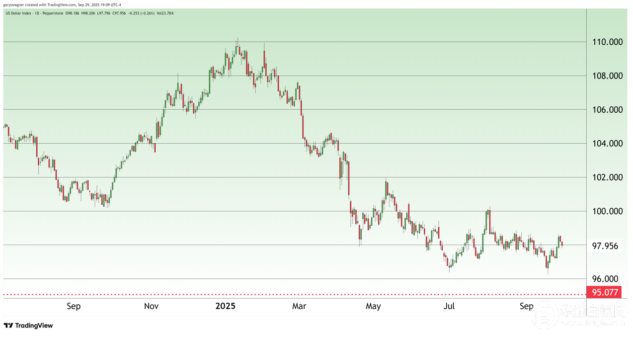 【华通白银网9月30日讯】黄金今天扩大了令人印象深刻的反弹,黄金飙升至新的日内记录,并实现了前所未有的收盘价。目前的上升势头是由多个因素共同驱动的:对迫在眉睫的美国政府停摆的担忧日益增加,投资者对预期美联储降息的乐观情绪,以及美元持续疲软。 交易最活跃的2025年12月黄金期货合约在今天的交易日上涨了73.10美元,收于每金衡盎司3,862.90美元——突破了心理上重要的3,800美元门槛,创造了新的历史结算记录。日内交易推高,黄金短暂触及3,863.70美元。 黄金2025年的表现非同寻常,年初至今的涨幅超过45%。这标志着自1979年以来最强的年度业绩,当时黄金在通胀率超过10%的情况下飆升。 关键驱动力 随着美国政府停摆的威胁迫在眉睫,市场参与者越来越多地寻求黄金的传统避风港地位。如果没有通过资助联邦计划的预算立法,政府业务将于10月1日停止,促使投资者对冲潜在的经济中断。 美元大幅疲软为金价提供了实质性支持。美国美元指数——衡量美元兑美联储1973年设立的一篮子六种主要货币(欧元、瑞士法郎、日元、加元、英镑和瑞典克朗)的价值——从1月6日的109高点急剧下降到目前的97.956。这代表了约11%的贬值,使以美元计价的黄金对国际买家更具吸引力。 额外的看涨情绪源于市场对美联储在年底前进一步降息的预期。较低的利率通常会降低持有黄金等无产资产的机会成本,从而增强了金属的吸引力。 持续的地缘政治紧张局势继续助长全球不确定性,而据信全球央行全年都保持了强有力的黄金购买计划,为价格提供了根本性支持。 美国时间9月29日,全球最大白银ETF——iShares Silver Trust的白银持仓量为15521.35吨,较前一交易日增加159.51吨。全球最大黄金ETF—SPDR GOLD TRUST的黄金持仓量为1011.73吨,较前一交易日增加6.01吨。 截止北京时间09:40,华通现货白银定盘价报10857元。 白银网 |
