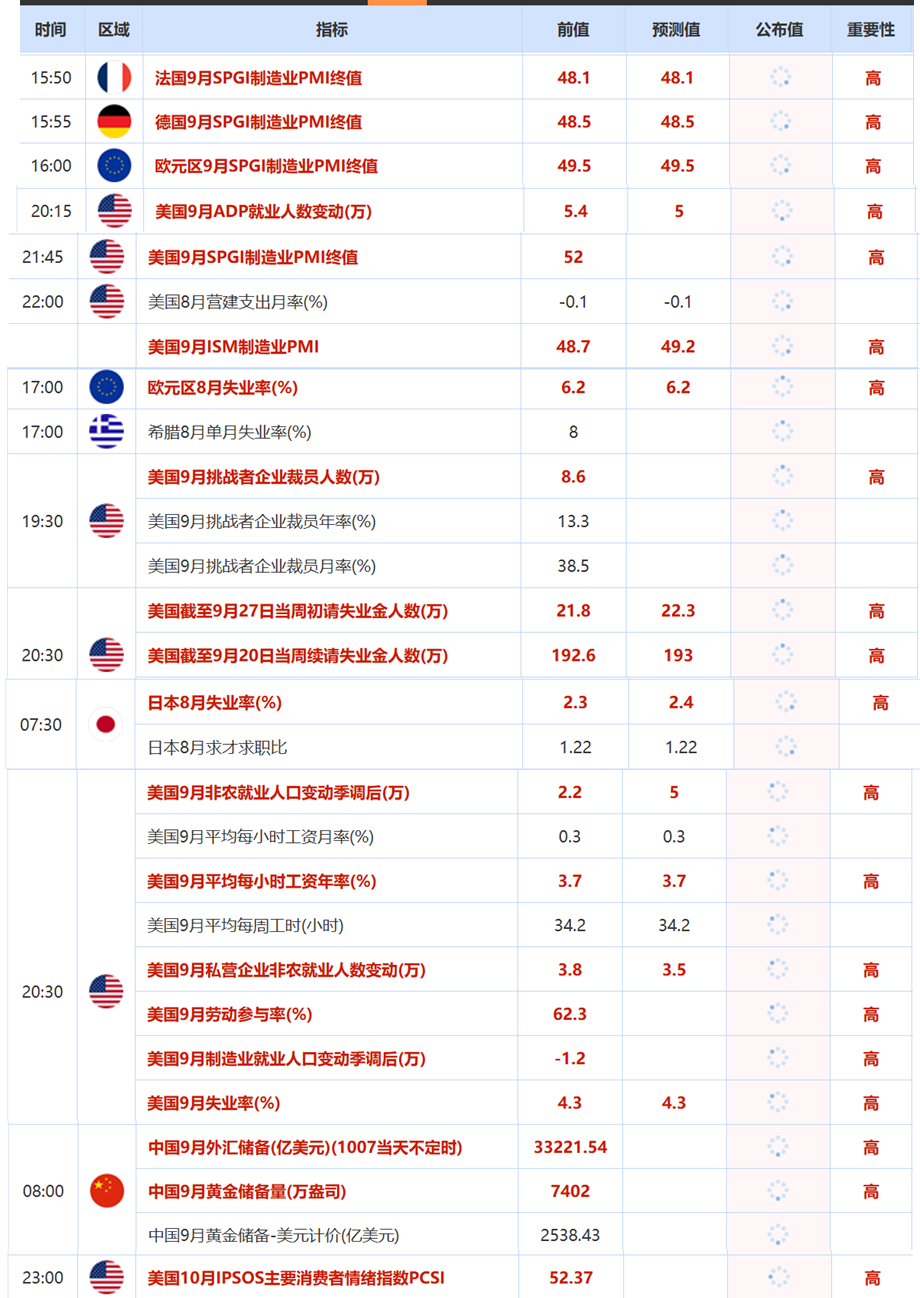 编者按:值此中秋国庆双节8天假期到来之际,国内的股市、期货市场等将进行休市,而美股、欧洲主要股指及国际大宗商品市场则持续交易,市场联动性下的信息差与波动风险值得关注。当前全球局势正处于多重关键节点:美国国会两党尚未就预算案达成共识,美国政府关门危机悬而未决,美国劳工统计局已明确预警,若停摆发生,10 月上旬原定发布的非农就业报告、消费者价格指数(CPI)等核心经济数据将被迫推迟,这无疑给全球货币政策预期与资产定价增添不确定性。与此同时,美国总统特朗普宣称以色列已接受其提出的加沙和平计划,这一消息能否缓和中东地缘紧张局势,仍待后续验证。聚焦国内,除了万众瞩目的旅游接待人次、文旅消费总额等假日经济核心数据外,双节前夕9月制造业PMI继续回升、重点城市消费券核销进度,以及国际大宗商品市场中有色金属、能源等品种的价格波动,都可能成为影响节后市场走向的关键变量。为此,SMM 梳理汇总假期前后核心数据与重大事件,以供大家参考! 国内方面 【国家统计局:9月制造业PMI为49.8% 比上月上升0.4个百分点】国家统计局数据显示,9月份,制造业采购经理指数(PMI)为49.8%,比上月上升0.4个百分点,制造业景气水平继续改善。9月份,综合PMI产出指数为50.6%,比上月上升0.1个百分点,持续高于临界点,表明我国企业生产经营活动总体扩张继续加快。国家统计局服务业调查中心首席统计师霍丽慧解读2025年9月中国采购经理指数:企业生产扩张加快。生产指数为51.9%,比上月上升1.1个百分点,升至近6个月高点,制造业生产活动较为活跃;新订单指数为49.7%,比上月上升0.2个百分点,市场需求景气度有所改善。从行业看,食品及酒饮料精制茶、汽车、铁路船舶航空航天设备等行业生产指数和新订单指数均高于54.0%,产需释放较快;木材加工及家具、石油煤炭及其他燃料加工、非金属矿物制品等行业两个指数均低于临界点。受制造业生产回升带动,企业加快原材料采购,采购量指数升至51.6%。》点击查看详情 【国资委:着力抓好布局结构调整的关键任务 破解科技创新的瓶颈障碍】据国务院国资委9月30日消息,国务院国资委日前召开国有企业改革深化提升行动2025年第三次专题推进会。会议提出,要刀刃向内、动真碰硬,坚决打赢高质量完成深化提升行动攻坚战。要强化问题导向,推进补短板强弱项,着力抓好布局结构调整的关键任务,着力破解科技创新的瓶颈障碍,着力补强公司治理和市场化经营机制的薄弱环节,着力攻坚国资监管的重点难点。要加强组织领导,注重突出重点,强化穿透基层,提升改革实效,确保高质量完成各项改革任务。 【国资委:国资央企要聚焦产业兴疆 积极在疆投资布局】据国资委网站消息,9月29日,国务院国资委党委召开扩大会议。会议强调,国资央企要聚焦产业兴疆,积极在疆投资布局,推动科技创新和产业创新深度融合,助力新疆发展特色优势产业,培育有竞争力的产业集群,因地制宜发展新质生产力;发挥“和美乡途”央企文旅帮扶平台作用,促进新疆文旅融合发展;深度参与新疆丝绸之路经济带核心区建设,助力新疆高水平对外开放。把保障和改善民生放在优先位置,持续加大产业、就业、人才、消费等领域帮扶力度,深入实施“小而美”的惠民项目,助力新疆乡村全面振兴,让新疆各族群众广泛参与发展进程、共享发展成果。 【央行提前“补水” 流动性平稳跨季无忧】9月29日,中国人民银行以固定利率、数量招标方式开展了2886亿元7天期逆回购操作。因当日有2405亿元7天期逆回购到期,实现净投放481亿元。专家表示,面对国庆假期、跨季等因素扰动,近期央行综合运用多种货币政策工具,呵护流动性态度明显。后续央行将继续把握好政策实施的力度和节奏,灵活运用货币政策工具,保持流动性充裕。(财联社) 【双节将至 民航旅客运输量预计创历史同期新高】今年的国庆和中秋共放假8天,民航出行需求大,是暑运后的又一客流高峰,北京两机场假期预计运送旅客超297万人次,其中,首都机场双节预计保障旅客167万人次。记者也从民航局了解到,今年国庆中秋假期,民航旅客运输量预计达到1920万人次,或将创下历史同期最高水平。 (央视新闻) 【全国铁路今天计划加开旅客列车2002列 部分高铁票价最低4折】国庆中秋假期即将开启,铁路国庆中秋假期运输方案29日已经启动。据国铁集团消息,29日,全国铁路共发送旅客1290.4万人次。今天(30日),全国铁路预计发送旅客1840万人次,计划加开旅客列车2002列。10月1日,全国铁路将迎来客流最高峰。目前全国铁路客流呈明显增长趋势,全国铁路今天预计发送旅客1840万人次,北京至广东、香港等方向加开高铁动卧。新线促高铁成环,各地加开环线高铁列车,龙门站至郑州站车票今日最低4折。 【长三角铁路今日预计发送旅客365万人次】中国铁路上海局集团有限公司消息,9月30日,长三角铁路持续迎来国庆黄金周出行大客流,当天预计发送旅客365万人次,较2024年同期(9月30日)多发送旅客21.3万人次,增幅超6%。昨天(9月29日),该集团公司实际发送旅客276.9万人次。(财联社) 【安徽省举行第四批重大项目开工动员会 总投资3323.8亿元】安徽省委、省政府举行2025年全省第四批重大项目开工动员会。本次开工动员项目587个,总投资3323.8亿元,年度计划投资426.9亿元。30亿元以上项目9个,50亿元以上项目5个。 