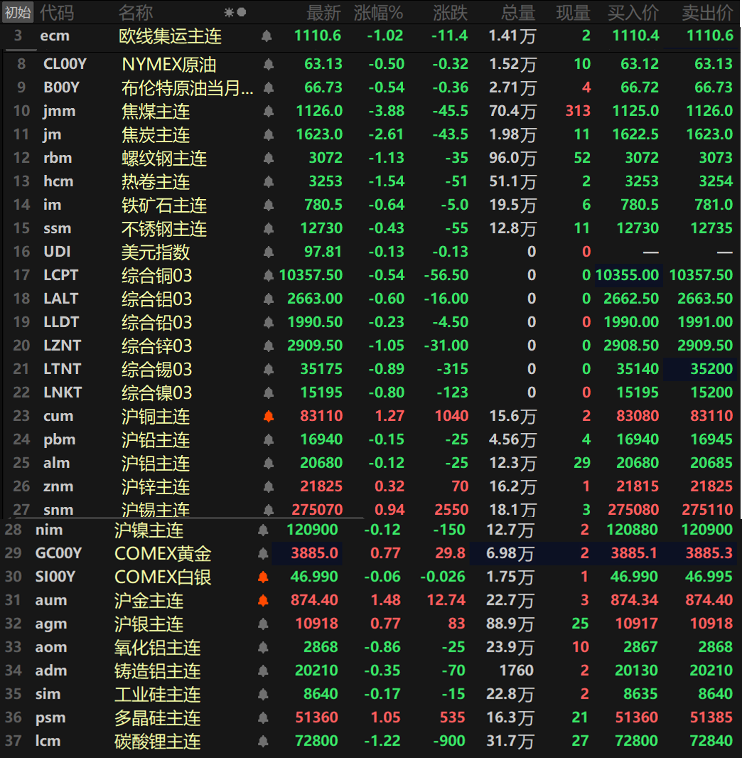SMM 9月30日讯: 金属市场: 截至日间收盘,内盘基本金属涨跌互现,沪铜以1.27%的涨幅领涨,沪锡涨0.94%,其余金属涨跌幅波动均不大。氧化铝主连跌0.86%,铸造铝主连跌0.35%。 此外,碳酸锂主连跌1.22%,工业硅主连跌0.17%,多晶硅主连涨1.05%,欧线集运主连跌1.02%报1110.6。 黑色系方面集体下跌,热卷、螺纹一同跌超1%,热卷跌1.54%,螺纹跌1.13%。双焦方面,焦煤跌3.88%,焦炭跌2.61%。 外盘方面,截至15:05分,外盘基本金属普跌,伦锌以1.05%的跌幅领跌,其余金属跌幅均在1%以内。 贵金属方面,截至15:05分,COMEX黄金涨0.77%,其盘中最高一度冲至3899.2美元/盎司,直逼3900美元的整数关口;COMEX白银跌0.06%。国内方面,沪金涨1.48%,其盘中最高冲至880元/克,续刷上市以来的历史新高;沪银涨0.77%,盘中最高冲至11029元/千克,同样刷新其上市以来的历史新高。 截至今日15:05分行情 》点击查看SMM行情看板 宏观面 国内方面: 【国家统计局:9月制造业PMI为49.8% 比上月上升0.4个百分点】国家统计局数据显示,9月份,制造业采购经理指数(PMI)为49.8%,比上月上升0.4个百分点,制造业景气水平继续改善。9月份,综合PMI产出指数为50.6%,比上月上升0.1个百分点,持续高于临界点,表明我国企业生产经营活动总体扩张继续加快。国家统计局服务业调查中心首席统计师霍丽慧解读2025年9月中国采购经理指数。》点击查看详情 【央行公开市场今日净回笼339亿元】央行今日开展2422亿元7天逆回购操作,操作利率为1.40%,与此前持平。因今日有2761亿元7天期逆回购到期,当日实现净回笼339亿元。 【武汉:加大刚性住房需求补贴力度】武汉市住房和城市更新局等部门9月30日联合发布《关于进一步促进武汉市房地产市场平稳健康发展政策措施的通知》提出,加大刚性住房需求补贴力度。2025年10月1日至12月31日,在武汉市东湖新技术开发区、武汉经济技术开发区(汉南区)、长江新区、东西湖区、黄陂区、江夏区、蔡甸区、新洲区以及汉阳区、青山区、洪山区三环线外的区域采取商业贷款形式购买首套新建商品住房的家庭,按照初始贷款金额1%发放贷款利息补贴,最高不超过2万元,分2年等额发放。 ►9月30日银行间外汇市场人民币汇率中间价为1美元对人民币币7.1055元 美元方面: 截至15:05分,美元指数下跌0.13%报97.81。最近美国政府停摆风险增加,当地时间29日,美国总统特朗普在白宫会见了国会两党领袖,讨论防止联邦政府停摆的措施。据美国媒体报道,国会两党领导人在会见特朗普后纷纷对媒体表示,双方存在巨大分歧,谈判进展甚微。 据央视新闻客户端,通常,政府“停摆”意味着大量联邦雇员被临时无薪休假,资金恢复后,就可以直接复工。但特朗普政府此次要求准备可能的“永久裁员”。这一做法打破了过去的政治默契,让“停摆”可能不再只是一次可逆的财政僵局,而成为潜在的制度性伤害,使得这场财政拉锯战的后果变得更加难以预测。 隔夜美联储官员讲话仍然密集,分歧仍然存在。其中新任理事米兰继续呼吁大幅降息,纽约联储总裁威廉姆斯表示,劳动力市场出现的疲软迹象促使他支持在最近的美联储会议上降息。不过圣路易斯联储总裁穆萨莱姆表示,他对进一步降息持开放态度,但美联储必须谨慎行事,将利率维持在足够高的水平,以继续抑制通胀,目前通胀率仍比美联储2%的目标高出约一个百分点。(文华综合) 宏观方面: 今日将公布美国9月芝加哥PMI、美国8月JOLTs职位空缺、美国9月谘商会消费者信心指数,澳大利亚截至9月28日当周ANZ消费者信心指数、澳大利亚9月现金利率,英国第二季度生产法GDP年率终值、英国第二季度生产法GDP季率终值,德国8月实际零售销售年率、德国8月实际零售销售月率、德国9月季调后失业率、德国9月季调后失业人数变动、德国9月CPI年率初值、瑞士8月官方储备资产等数据。 值得注意的是,中国上金所、上期所、郑商所、大商所因国庆节前夕无夜盘交易。此外,美联储副主席杰斐逊发表讲话,欧洲央行行长拉加德在芬兰央行主办的国际货币政策会议上发表讲话,日本央行将公布9月货币政策会议审议委员意见摘要,澳洲联储将公布利率决议,澳洲联储公布利率决议。 原油方面: 截至15:05分,两市油价一同下跌,美油跌0.5%,布油跌0.54%。因市场预计OPEC+周日的会议上料决定11月进一步提升原油产出,同时伊拉克库尔德斯坦地区已经恢复经由土耳其出口原油,这令市场人士对油市供应过剩的担忧增加。 IG分析师Tony Sycamore在给客户的一份报告中称,油价下跌之际,伊拉克库尔德斯坦地区周末恢复原油出口,有报道称OPEC+可能会在本周末的会议上批准11月的增产。三位市场人士表示,在定于周日举行的会议上,OPEC+可能会批准再次增加石油产量,至少13.7万桶/日。 Marex分析师Ed Meir表示:“尽管OPEC 的产出无论如何都在配额范围内,但市场似乎仍然不喜欢更多石油进入的事实。”伊拉克石油部表示,在达成一项临时协议从而打破僵局之后,伊拉克北部库尔德地区通往土耳其的输油管道周六开始输油,这是两年半以来的第一次。 最近数周,市场人气谨慎,在供应风险与供应过剩和需求疲软的担忧之间取得平衡。有技术分析师称,预计布伦特原油料测试支撑为每桶67.26美元,若跌破该支撑,市场将进一步跌向每桶66.43美元。(文华综合) SMM日评 ►铸造铝合金主力日内弱势震荡 下游备库结束成交清淡【ADC12价格日评】 ►A00窄幅震荡 废铝假前