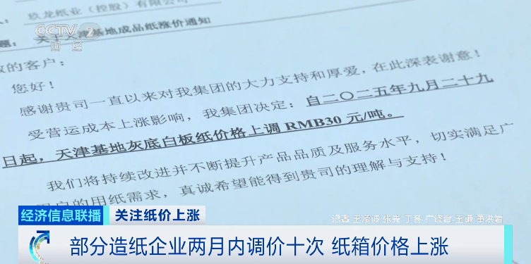 近日,多家包装纸企业发布了新一轮调价函,据不完全统计,这已经是8月以来的第10次涨价。为什么纸企频繁涨价、下游企业是否受到了影响? 部分造纸企业两月内调价十次纸箱价格上涨 在山东一家造纸企业,一些成品纸卷正在装箱,经由叉车装上大货车,准备运往下游企业。 ![]() 山东东营华泰造纸有限公司总经理李建强:当前出货非常旺,一天发货量在300吨,这个月的发货量达到一万吨,本月每吨的涨幅达到了200元。 ![]() 7月以来,造纸企业就开始接连发布纸价上涨函。仅8月以来,个别纸企针对牛卡纸、瓦楞纸等包装纸种就发布了10次涨价函,每次的涨幅在每吨30元至50元不等。记者了解到,“双节”来临带来的需求增长叠加上游原材料废纸价格的上涨共同推高了原纸价格。 ![]() 纸企涨价推高下游纸箱成本。负责人告诉记者,在纸箱的成本中,所用原纸的成本占比达到了70%到80%。从今年7月底开始,工厂制作纸箱所用的瓦楞纸和牛卡纸原纸价格就一直上涨,直接推高了成品纸箱的价格。 ![]() 天津秉信包装有限公司总经理骆志超:从七月底开始纸价一直在上涨,基本上一个月会有4次到5次涨价函。一般七月份瓦楞纸价格在每吨2800元,现在来看,应该是每吨涨了300元到350元,涨幅在10%到15%左右。 降雨增加废纸收货难度造纸行业成本压力上升 废纸是制作纸箱原纸的重要原料,近期废纸需求增加,多地降雨影响了废纸供应,导致废纸的价格出现了不同程度的上涨。 ![]() 在天津一家再生资源综合利用企业的场地上,叉车正在搬运压成垛的废纸。7月以来,废纸的价格也在上涨。 ![]() 万绿达(天津)再生资源利用有限公司副总经理严俊:从社会端回收的价格也从七月份每斤4角多至5角,到现在每斤5角至6角左右。工厂端七月份可能在每吨1200元左右,现在应该是每吨1400元左右。 ![]() 严俊告诉记者,公司的废纸回收来源主要依靠废纸打包站、社区回收点和其他一些废纸平台。其中,废纸打包站的供应量大约占到了八成。而近期连绵的雨天增加了收货和运输的难度。 ![]() 山东太阳宏河纸业有限公司废纸采购部工作人员平健:近期雨季,打包站收货量也比较小,质量上也不太稳定,大部分纸厂收货量都处在低位,大部分是勉强够日需。 ![]() 国泰君安期货首席分析师高琳琳:煤炭、废纸、原料价格的上涨和辅料助剂价格的上涨,推动了造纸行业整个成本面的抬升。 (文章来源:央视财经) |