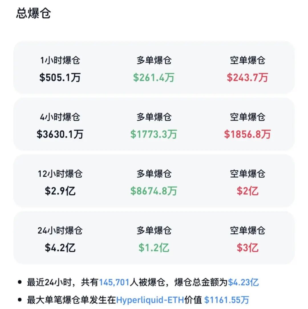 【导读】比特币价格突破12万美元大关,近15万人被爆仓 加密货币市场集体走强,比特币价格突破12万美元大关。Coinglass数据显示,过去24小时加密货币市场共有近15万人被爆仓。 比特币价格突破12万美元大关 10月3日凌晨,比特币价格突破12万美元大关,24小时涨幅为1.6%。 ![]() 以太坊一度突破4500美元/枚,涨超3%。 ![]() 此外,BNB、索拉纳币、狗狗币均涨超5%。 ![]() Coinglass数据显示,过去24小时加密货币市场共有近15万人被爆仓,爆仓总金额为4.23亿美元,其中多单爆仓1.2亿美元,空单爆仓3亿美元。其中,最大单笔爆仓发生在Hyperliquid-ETH。 ![]() 消息面上,因美国国会参议院否决临时拨款法案,美国联邦政府自10月1日起进入“停摆”。受政府“关门”影响,约75万名联邦雇员被迫停薪休假,多项公共服务陷入停滞,国家公园、航空系统均受到冲击。 据路透社报道,美国联邦政府“关门”导致约75万名联邦雇员被迫停薪休假,而不能离岗的军队及边境巡逻人员等其他职员暂时“无薪上班”。 美国副总统万斯警告,如果联邦政府“停摆”持续时间较长,可能会引发裁员。白宫发言人莱维特则说,联邦政府裁员“很可能”发生,且“很快”会发生。 摩根大通:比特币在年底前或达16.5万美元 不过,美国政府关门事件并未动摇华尔街对加密货币的展望。10月2日,花旗银行在其最新的报告中更新以太坊和比特币未来12个月的目标价,分别上调至5400美元和18.1万美元。 花旗表示,预计明年投资者需求将继续推动其价格上涨。“相比于以太坊,我们对比特币更为看好,因为它在加密货币市场的新增流动资金中占据了很大比例。” 花旗还指出,政府关门可能会推迟关键经济数据的发布,但强调这不应改变美联储的政策路径。该行经济学家仍预计美联储10月和12月将分别降息25个基点,这与美联储最新的点阵图一致。 此外,摩根大通的分析师表示,比特币价格可能在年底前攀升至16.5万美元,他们认为,从波动率调整后的基础来看,比特币与黄金相比被低估了。 摩根大通分析师在周三的一份报告中称,比特币与黄金的波动率比率已降至2.0以下,这意味着比特币目前消耗的风险资本约为黄金的1.85倍。基于这一比率,比特币目前2.3万亿美元的市值需要上涨约42%。“这可能意味着比特币有显著的上涨空间。” 该分析师认为,这一转变是由散户主导的“贬值交易”。投资者纷纷涌向比特币和黄金,以对冲赤字、通胀和法定货币贬值的风险。散户投资者一直是比特币投资的“主力军”,自2024年底以来,他们纷纷涌入现货比特币和黄金ETF。尽管机构投资者已通过CME期货参与其中,但与ETF流入量相比,他们的参与度有所落后,这凸显出这一势头在多大程度上是由散户推动的。 (文章来源:中国基金报) |