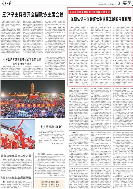 9月30日起,《人民日报》连续五天刊发“钟才文”署名评论,关注中国经济这一核心议题,对当前经济形势进行权威解读,凝聚社会共识,指引未来发展方向。 该组评论文章被统率在“习近平经济思想指引下的中国经济专论”栏目之下,均发表于《人民日报》要闻版,其中部分篇目还发表于头版,受到国内外舆论场高度关注。 ![]() 10月4日,《人民日报》最新一篇“钟才文”专论题为《全面认识把握中国经济高质量发展的确定性》,明确指出中国经济高质量发展的确定性来源于中国在发展战略、宏观政策、市场潜力、市场空间、发展韧性以及投资环境等方面。 评论指出,长期以来,我们党带领全体人民推进现代化建设,通过中长期规划来指导经济社会发展,战略目标和短期目标相互叠加,坚持一张蓝图绘到底。我国先后制定并实施了14个五年规划(计划),不求毕其功于一役,而是一茬接着一茬干,芝麻开花节节高。反观一些西方国家,在国家大政方针上摇摆不定,翻手为云、覆手为雨,甚至开历史的“倒车”。 此外,无论外部环境如何复杂多变,中国的宏观政策始终坚持稳中求进工作总基调,坚持遵循经济规律,在保持财政、货币等宏观政策连续性稳定性基础上,根据形势变化适时、适度调整政策力度和方向。宏观政策调整注重长周期和战略考量,而不只是看眼前短期利益、局部利益。 今年以来,面对美国滥施所谓“对等关税”,中国多措并举帮扶受关税影响企业,上半年实现经济增长5.3%,承受住了贸易保护主义和外需收缩的双重压力。这一数据清晰说明,中国经济是一艘巨轮,而不是一条小舢板,发展韧性强、潜力大、活力足,有足够能力和底气应对内外部风险挑战。 ![]() 此前,发表于9月30日的首篇评论《从全球视角看新时代中国经济的跨越与蝶变》指出,在以习近平同志为核心的党中央坚强领导下,在习近平经济思想指引下,中国经济始终保持战略定力,坚持高质量发展不动摇,着力构建新发展格局,走出了一条与世界其他主要经济体形成鲜明对比的稳健发展之路,在充满不确定的世界里,展现出强大韧性和活力,实现了历史性的跨越和蝶变。 ![]() 10月1日,“钟才文”评论《深刻认识中国经济长期稳定发展的内在逻辑》系统总结了支撑中国经济行稳致远的六大要素:坚持党的领导;理论体系与时俱进、不断创新;战略规划引领和有效宏观调控相结合;坚持以人民为中心的发展思想、充分调动各方面积极性;社会主义市场经济适应生产力发展需要;超大规模市场和创新驱动发展相互促进、良性循环。 ![]() 10月2日的评论《科学客观看待我国当前经济发展态势》直面我国经济形势中的分化,指出看经济要坚持两点论,用好辩证法。总的看,我国经济形有分化、势在向好、未来可期。评论指出,产业转型升级不是一个齐头并进的过程,不是“齐步走”,而是有快有慢、有先有后,不同区域、行业、群体会出现分化,宏观数据同部分微观主体感受会有“温差”。对此,我们要全面看待,不能因为部分经营主体感受不好就否定整体经济形势,不能“只见树木、不见森林”。同时,我们要通过改革发力、政策给力,着力缩小“温差”,努力让广大人民群众享受发展红利。 ![]() 当前,国际国内有一些声音认为,在中国,投资和发展已经过了黄金阶段,机会变少。10月3日,评论《中国经济转型升级蕴含重大机遇》则明确驳斥了这样的观点,指出中国从不缺乏投资机会和市场空间,中国经济加快转型升级,蕴含产业升级、科技创新与人才红利、消费扩容升级、传统与新型基础设施建设、新型城镇化与城市更新、保障和改善民生等六大机遇,将为世界各国带来前所未有的重大机遇。 (文章来源:澎湃新闻) |