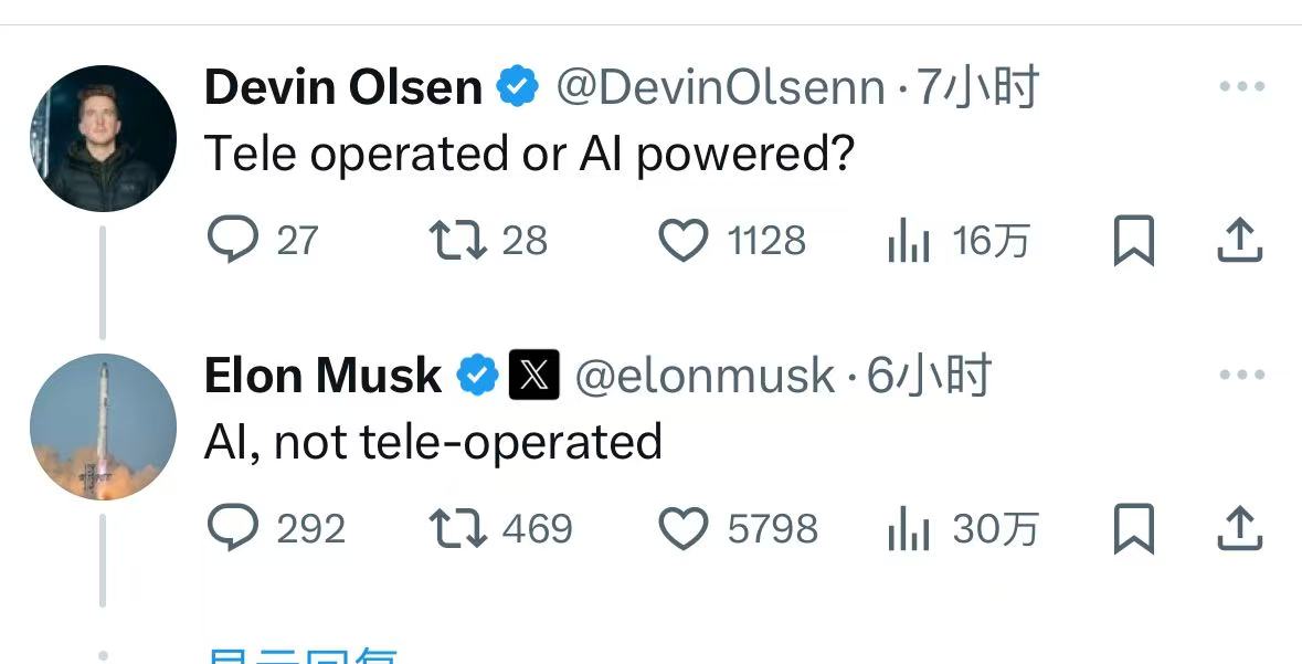 北京时间10月4日,马斯克在社交平台X发布了一段特斯拉机器人Optimus和人类工作人员“过招”练功夫的视频。针对Optimus本次“对打”是遥控还是AI驱动的问题,马斯克在评论区明确回应:“是AI,不是遥控。”