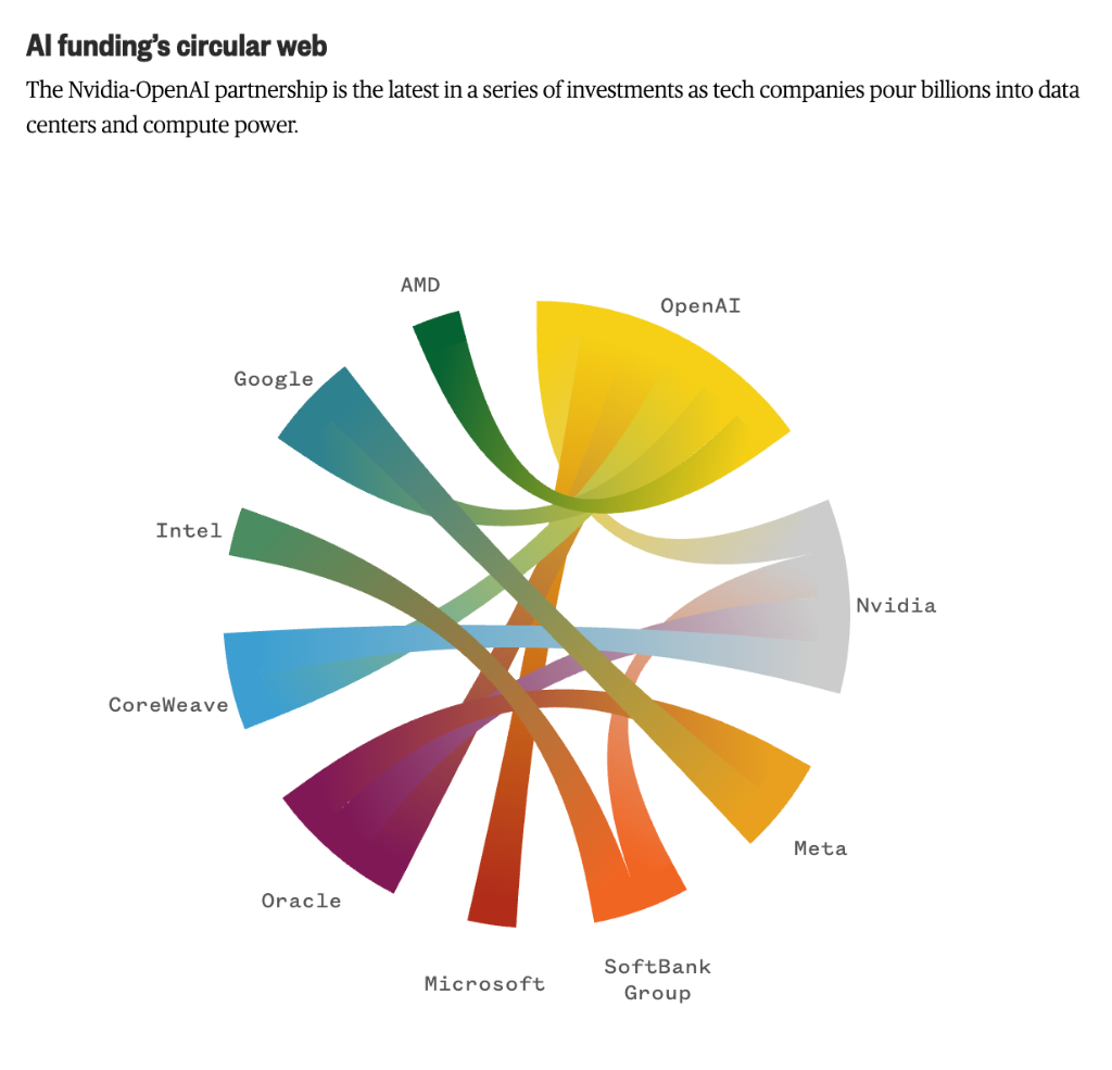 美股三大指数当地时间周一(10月06日)收盘涨跌不一。截至收盘,道琼斯工业平均指数比前一交易日下跌63.31点,收于46694.97点,跌幅为0.14%;标准普尔500种股票指数上涨24.49点,收于6740.28点,涨幅为0.36%;纳斯达克综合指数上涨161.16点,收于22941.67点,涨幅为0.71%。纳指、标普500指数创收盘新高。 ![]() 大型科技股多数上涨,AMD涨超23%,特斯拉涨超5%,微软、谷歌涨超2%,英伟达跌超1%。加密货币、贵金属板块涨幅居前,Bitfarms涨近15%,赫克拉矿业涨超4%,泛美白银涨超2%,Circle、Coinbase涨超1%。 ![]() 纳斯达克中国金龙指数收涨1%,热门中概股多数上涨,小牛电动涨超23%,小鹏汽车、百度涨超2%,知乎、京东、名创优品涨超1%,蔚来跌超1%。 ![]() 当地时间周一,以芯片股和AI概念股为主的科技股延续涨势,受利好消息提振,英伟达的竞争对手,市值超2万亿人民币的超威半导体(AMD)周一收盘狂涨超23%。 ![]() 01 苏姿丰:AI正处于十年增长周期需要强力基础算力支撑 消息面上,据央视财经,AMD与OpenAI与宣布达成合作协议,双方共同确认,OpenAI将在未来多年内部署总容量高达6吉瓦的AMD算力芯片,美国媒体预估采购协议规模在数十亿美元左右。这项合作将于2026年下半年启动,首批部署的芯片容量为1吉瓦。 除采购芯片外,合作协议还包含股权合作——AMD已向OpenAI发行了认股权证,OpenAI最多可认购1.6亿股AMD普通股,相当于后者10%的股权,这些股权的兑现时间与芯片实际部署规模以及AMD股价表现挂钩。 AMD方面预计,与OpenAI的交易将为公司带来每年数百亿美元的净收入,预计公司未来四年内将从OpenAI和其他客户那里获得超过1000亿美元的新收入。AMD的战略主管Mat Hein表示:“其他人也会加入进来,因为OpenAI是行业先驱,能够对更广泛的生态系统产生影响力。” 针对本次合作,OpenAI总裁格雷格·布罗克曼(Greg Brockman)在接受外媒采访时表示:“我们必须这么做。如果我们真的想要扩展规模、触及全人类,这就是我们必须要做的事情。这与我们的使命息息相关。” 布罗克曼补充说,由于算力不足,公司目前无法在ChatGPT和其他产品中推出许多本可以带来收入的新功能。 AMD董事长兼CEO苏姿丰(Lisa Su)也在采访中强调了算力的重要性。她表示,AI正处于一个为期10年的增长周期中:“归根结底,你需要强大的基础算力支撑......你需要像这样的合作伙伴关系,把整个生态系统真正地凝聚在一起,确保我们能够将最优秀的技术带给世界。我们对这里的机会感到非常兴奋。” OpenAI的CEO山姆·奥特曼(Sam Altman)表示:“AMD在高性能芯片领域的领导地位将帮助我们加速进展,更快地让先进AI的优势惠及每个人。” 02 OpenAI的“大网” 就在前不久,当地时间9月22日,OpenAI宣布与英伟达签署意向书并达成战略合作,OpenAI将能够使用英伟达系统(意味着数百万台GPU)构建和部署至少10GW(千兆瓦)的AI数据中心,用于训练和运行下一代模型。不仅如此,英伟达还计划逐步向OpenAI投资1000亿美元。 有专业观点分析认为,根据周一披露的交易,OpenAI与AMD的这笔合作看起来与OpenAI上月同英伟达达成的交易如出一辙,本质上都是一份长期客户承诺:OpenAI承诺大批量采购高端芯片,而芯片制造商则获得稳定的未来收入保障。 交易细节显示,AMD则向OpenAI提供了一份慷慨的认股权证,若满足特定业绩目标,OpenAI有权以仅160万美元的成本,获得AMD公司10%的股份。如果AMD股价能达到600美元,这笔股权价值将高达960亿美元。 Altman构建的这张利益网远不止于芯片制造商。实际上,放眼全局,一个精心设计的、盘根错节的关系网已经形成。 这张网络中的关键节点包括:英伟达不仅是OpenAI的合作伙伴,同时也持有数据中心公司CoreWeave的股份,而OpenAI恰好也是CoreWeave的股东之一;微软作为OpenAI的早期投资者,早已深度介入其发展;与此同时,OpenAI与谷歌也保持着复杂的合作关系,它既是谷歌云服务的客户,其模型也通过谷歌云平台提供给其他用户,扮演着供应商的角色。 ![]() 通过交叉持股来巩固供应链关系,是一种古老的企业策略。Altman如今的做法,正是这一模式在AI时代的全新演绎。 分析观点表示,虽然这种安排有利于供应商和客户以非对抗方式合作,但“双赢”安排在出现问题时可能变成“双输”。随着更多公司依赖OpenAI的增长,将业务重心转向服务这一重要客户,它们在利润和股价方面的风险敞口也随之增加。 对于Altman而言,这种帝国建设策略颇为精明。确保OpenAI成功正在成为所有相关方的共同利益,从而为公司构建了更加稳固的生态系统。 (文章来源:东方财富研究中心) |