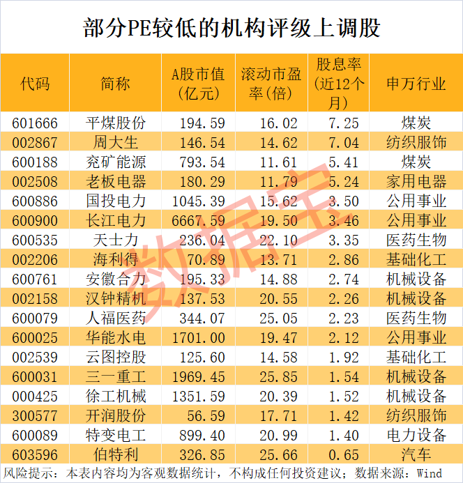 机构近期对哪些股票青睐有加? 41股获机构上调评级 机构研报评级上调通常表明市场对相关资产或公司的未来发展持乐观态度,认为其具有较好的增长潜力和投资价值。据证券时报·数据宝统计,2025年9月,共有41股获机构上调评级。 多只细分行业的龙头股入围。传统行业方面,包括水电龙头长江电力、华能水电,火电龙头国投电力,挖掘机龙头三一重工、徐工机械,煤炭龙头兖矿能源等名列其中。 新兴产业方面,新能源汽车龙头北汽蓝谷,电解液龙头新宙邦,智能驾驶龙头伯特利,高端医疗器械龙头乐普医疗以及特高压龙头特变电工等榜上有名。 以水电龙头长江电力为例,公司今年上半年实现净利润130.56亿元,同比增长14.86%。公司以大型水电运营为主要业务,为全球最大的水电上市公司,目前水电总装机容量7179.5万千瓦。中原证券研报认为,公司水电主业经营稳健,经营周期长,盈利能力强且稳定,作为价值蓝筹标杆和高股息标的,为长期持有的投资者带来了较为丰厚的回报。 少数冷门股获得机构青睐,如英华特、日辰股份、好想你、长久物流、王子新材等。 以英华特为例,公司主要从事涡旋式压缩机业务。随着应用场景的不断拓展,涡旋压缩机在储能温控、轨道交通、数据中心等新兴场景也具有广阔的市场空间。招商证券研报表示,考虑到公司产品竞争力强劲,未来国产空间大,后续持续拓展除热泵、冷冻冷藏、中央空调外的新领域,中长期增长空间可观,2026年以后盈利弹性较大。 14只股票相对滞涨 据数据宝统计,从二级市场表现来看,截至9月30日收盘,上述41只获机构评级上调的股票今年以来平均上涨32.46%,其中迈威生物-U、新时达、大金重工、敏芯股份、大族激光累计涨幅居前。 迈威生物-U年内累计上涨143.17%,排在第一。公司是一家创新型生物制药企业,多款特色创新管线差异化布局,全球进度第二的靶向ST2单抗(9MW1911)国内首款进入临床,目前处于临床II期;全球进度第一梯队的靶向TMPRSS6单抗(9MW3011)除大中华区及东南亚区外的区域已授权DISC公司开发、生产及商业化,并获FDA快速通道认定(FTD)和孤儿药认定(ODD)。西部证券指出,迈威生物-U的ADC管线临床加速推进、海外BD有望落地。 14只股票年内涨幅跑输同期上证指数,包括老板电器、人福医药、平煤股份、上汽集团、国投电力等。 其中,国投电力跌幅最大,年内累计下跌19.03%;今年上半年,公司实现净利润37.95亿元,同比增长1.36%。 低PE+高股息股出炉 从估值水平来看,截至9月30日收盘,18股滚动市盈率(PE)低于30倍,其中6股滚动市盈率不到15倍,分别是兖矿能源、老板电器、海利得、云图控股、周大生、安徽合力。 兖矿能源滚动市盈率为11.61倍,排在最低位置。兴业证券研报显示,今年上半年,兖矿能源展现出优异的成本管控能力,以对冲周期波动,长期看,公司资源储备雄厚,后期增长潜力稳固。 上述这18只低市盈率的股票中,9月以来融资净买入超1亿元的仅3只,分别是特变电工、天士力、国投电力,融资净买入额分别为12.89亿元、1.52亿元、1.4亿元。 特变电工9月30日收盘涨幅5.01%,最新收盘价创今年以来新高,A股市值逼近900亿元。银河证券认为,公司在输变电产业及能源产业相关业务中实力强劲,未来随着电网持续加大投资,业绩有望继续高增。 从股息率角度来看,截至9月30日收盘,股息率(近12个月)最高的是平煤股份,达到7.25%。今年上半年平煤股份实现净利润2.58亿元,同比下滑81.53%;报告期内,公司主要煤炭产品价格下行,导致净利润下降。 周大生股息率为7.04%,排在第二。今年上半年公司实现净利润5.94亿元,同比下滑1.27%。 兖矿能源、老板电器股息率介于5%至6%之间,股息率较高的还有国投电力、长江电力、天士力、海利得、安徽合力等。 |