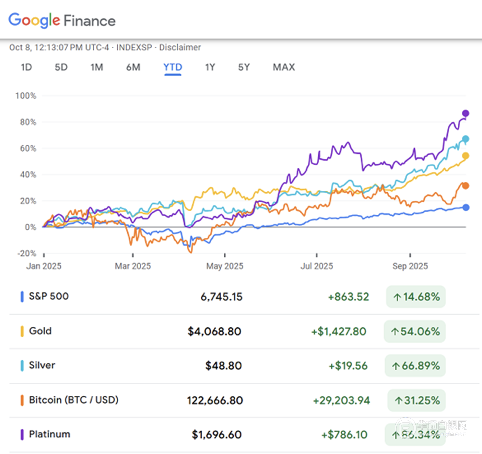 【华通白银网10月9日讯】周三,黄金价格飙升至4000美元/盎司以上的历史新高,而白银价格逼近50美元历史高点,铂金价格在年内涨幅超86%。 “市场上许多明显的负面因素未能造成影响。”FT.com的一篇观点专栏文章表示。 “这意味着,可能是时候为今年最后几个月的融涨做好准备了。” 英国巴克莱银行(Barclays)分析师表示:“FOMO正如火如荼地进行着。”他们指出,“错失恐惧症”推动资金进一步流入美国股市。 “华尔街称之为贬值交易,”《华尔街日报》表示,“(因为)投资者正把钱投入黄金、比特币和其他替代资产,以应对对美元未来的担忧。” 路透社专栏作家Jamie McGeever表示:“美联储主席鲍威尔称,需要降息来支持岌岌可危的劳动力市场,但这可能值得怀疑。” “不那么有争议的是,它们正在推动本已飙升的资产价格。” (年初至今标准普尔500指数,黄金,白银,比特币和铂金价格变动百分比图表) 日本三菱集团贵金属部门的一份最新报告称:“以几乎任何标准衡量,黄金似乎都处于超买状态,但市场几乎没有表现出价格约束。” “虽然美国政府停摆,加上进一步降息的预期不断上升,通过美元走软为黄金提供了一个积极的背景,但似乎不透明或未报告的央行购买行为也可能积聚了动力。” 中国黄金批发交易恢复,全球金价较上周二因国庆假期休市时高出约200美元/盎司。中国是全球最大的黄金开采国、消费国、央行购买国和进口国。 法国投资银行法国外贸银行表示:“下行风险可能来自美国找到结束政府关门的解决方案。” 经纪公司StoneX分析师Rhona O’Connell表示:“加沙和平的可能性”为金价突破4000美元提供了另一个可能的阻力。 随着金价周三飙升至4050美元/盎司(本周迄今累计上涨4.2%),白银价格升至49.44美元,较上周五晚间收盘时上涨3.0%,有关伦敦供应紧张的进一步传言进一步加剧。伦敦是全球黄金批发的中心交易和存储中心。 日本金银市场协会的Bruce Ikemizu表示:“在我从事贵金属行业的38年里,我从未见过白银一个月的年租率超过10%。” “这一增长可能是由于重大的供需因素。” 铂金1个月的租赁率回落至每年13%,远低于今年夏天的大幅飙升,但在2025年美国贸易关税不确定性之前,铂金在伦敦的租赁率保持在历史最高水平。 以美元计算,铂金价格今日触及12.5年高点,至1678美元/盎司,本周迄今累计上涨逾3.3%,自新年以来累计上涨86.4%。 与此同时,钯金今年迄今上涨了62.8%,周三升至每盎司1440美元的两年新高。 美联储新任主席、白宫经济顾问Stephen Miran昨日表示,美国国债价格的相对平静“证明了我的观点”,即大幅下调美元利率。 最新民调显示,特朗普在美国选民中的支持率正在下降,大多数人反对他在芝加哥和波特兰等城市部署国民警卫队。 截止北京时间09:40,华通现货白银定盘价报11206元。 白银网 |
