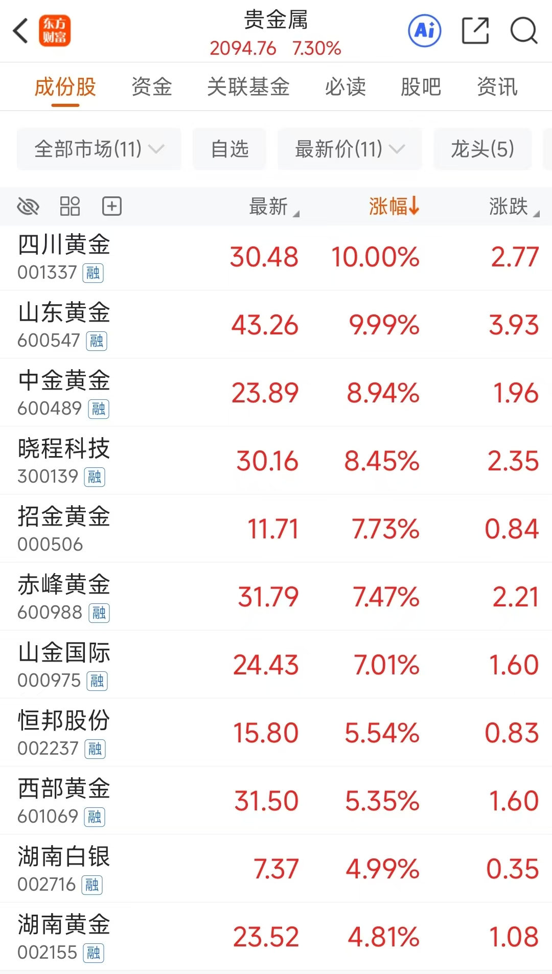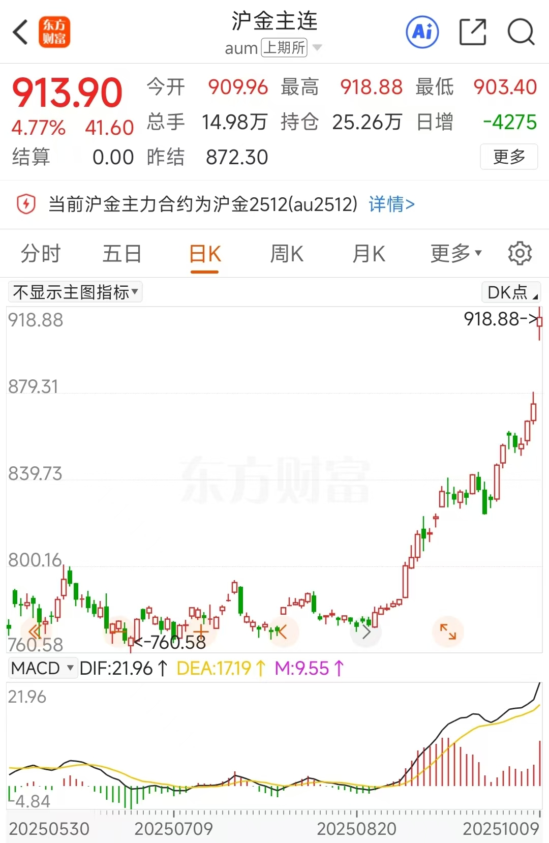 受国庆假期期间金价飙涨带动,10月9日早盘A股贵金属板块强势领涨,早盘收盘时指数大涨7.3%,板块中四川黄金、山东黄金涨停。 ![]() 沪金期货主力合约在10月9日也是跳空大涨,突破900元/克关口,创历史新高,早盘收盘时报913.9元/克。相关ETF基金同样纷纷走强,黄金ETF、黄金股票ETF、有色ETF、有色金属ETF、工业有色ETF等纷纷大涨,其中黄金股票ETF早盘收盘时大涨7.95%。 ![]() 三大因素刺激黄金走强 综合市场观点来看,对于假期黄金大涨的缘由,以下三个方面是市场谈论较多的: 一是美国政府“关门”,所带来的避险情绪。据新华社报道,由于美国会参议院9月30日先后否决两党拨款法案,当地时间10月1日0时1分,美国联邦政府近7年以来再次“关门”,数十万联邦雇员不得不面临强制休假或被裁员,众多联邦部门的服务也“停摆”。 美国白宫国家经济委员会主任凯文·哈西特表示,政府“关门”正以每周约150亿美元的速度削减美国经济产出。摩根大通首席美国经济学家迈克尔·费罗利则指出,政府“停摆”持续不仅会影响经济生产力,还可能对市场情绪产生影响。由于裁员威胁和实际失业,此次“停摆”可能会给劳动力市场和消费者支出带来风险。 二是全球央行的购金热潮仍在持续。世界黄金协会的数据显示,2025年以来,全球央行黄金净购买量连续多个季度保持高位。协会发布的《2025年全球央行黄金储备调查》进一步显示,95%的受访央行预计未来12个月内全球央行黄金储备将进一步增加。 我国央行也在持续购买黄金,国家外汇管理局日前公布的数据显示,截至2025年9月末,央行黄金储备升至7406万盎司,较前月增加4万盎司,实现连续第11个月增持。 ![]() 三是美联储降息和美国经济衰退的预期,使得全球投资者对美元信用和美国主权债务的担忧进一步上升。东吴证券指出,在8月全球央行年会美联储表态的关键改变后,再通胀的持续性以及非恶性服务业通胀情况下降息预期的延续成为了本轮中期宏观叙事的核心逻辑,关税带来的通胀上行与降息带来的名义利率下行将延续后续市场,实际利率快速下行期已至。 而美联储利率观测工具最新数据显示,10月美联储降息25个基点的概率高达97.4%,12月继续降息25个基点的概率为76.9%。目前,美国的联邦基金利率目标区间为4%~4.25%。 ![]() 机构继续看好黄金 或是以色列与哈马斯签署停火协议影响,10月9日COMEX黄金略有回调,但仍在4050美元/盎司附近徘徊。今年以来,COMEX黄金已累计大涨超53%,成为年内最强势的资产之一。 而对于涨幅巨大的黄金而言,不少机构认为未来仍有很大的上涨空间。比如瑞银发布报告表示,黄金市场目前倾向于看涨行情,预计到2026年年中金价将升至4200美元/盎司。高盛则将2026年12月金价预估上调至4900美元/盎司,先前预估为4300美元。 不少国内机构也纷纷看好黄金,比如东吴证券认为,贵金属后续空间广阔,贵金属有望持续走强。中信建投也认为,美国政府关门扰动、未来降息和衰退的预期使得全球投资者对美元信用和美国主权债务的担忧进一步上升,这推动了金银等贵金属和比特币价格进一步走高。 西部证券更是认为,当前金价处于“第三浪”初期。1971年布雷顿森林体系崩溃,美元信用裂痕扩张,金价10年10倍,直到1980年石油美元体系正式确立,美元信用再次确立,金价才见顶回落。类似的,当前随着美元信用裂痕持续扩张,金价将开启长期牛市。他们判断,重启降息意味着美联储独立性受损,未来美联储独立性会持续受到损害,黄金的储备价值将进一步彰显,而目前正处于第三波主升浪行情的早期。 贵金属板块年内狂飙 得益于国际金价的拉升,年内A股贵金属板块集体强势。东方财富Choice数据显示,截至9月30日收盘,招金黄金、西部黄金、盛达资源年内纷纷翻倍,涨幅分别为173.8%、161.83%、121.95%。紫金矿业、赤峰黄金、晓程科技年内则累涨超90%。整体而言,13只贵金属概念股,年内悉数上涨,上涨中位数高达87.21%。 ![]() (文章来源:东方财富研究中心) |