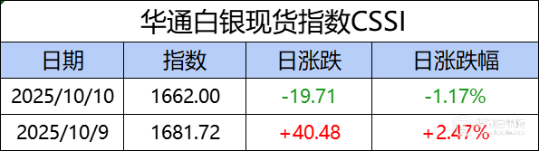 华通白银现货指数CSSI走势日报,今日指数1662.00,日涨跌-19.71,日涨跌-1.17%