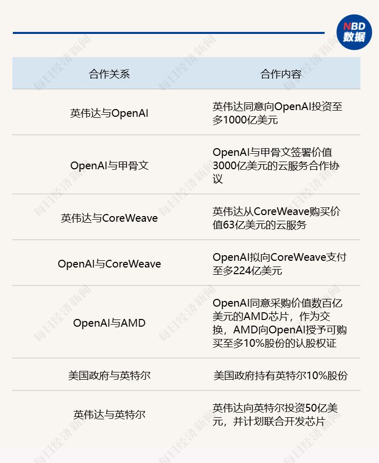 硅谷正在进行一场价值超1万亿美元的世纪“豪赌”。 为驱动通用人工智能(AGI)发展,OpenAI在过去数月与英伟达、甲骨文、AMD等公司达成天价协议。这笔人类科技史上最昂贵的押注,因为其特别的合作模式——供应商向客户投资,客户再购买产品——引发争议。 这种“循环融资”引发市场的强烈警惕,因为它与2000年互联网泡沫破灭前的情形如出一辙。 OpenAI万亿美元“豪赌”算力,供应商“曲线”入股 截至目前,OpenAI已与英伟达、AMD、甲骨文、软银等巨头达成了超过1万亿美元的基础设施和芯片协议。据估算,OpenAI的合作项目涵盖超过20吉瓦的AI算力规划产能(相当于20座核电站的输出)。 ![]() 在一项标志性协议中,英伟达同意向OpenAI投资最高1000亿美元,分阶段执行,并与OpenAI建设数据中心的进度挂钩。甲骨文则签署了一份价值3000亿美元的云服务协议,用于承载OpenAI的算力负载。AMD也以一份“巧妙”的协议向OpenAI授予价值高达其自身10%股份的认股权证,换取OpenAI购买并共同开发AMD的下一代AI芯片。 这些交易模糊了客户与投资者的界限。供应商通过“曲线”入股或投资,确保OpenAI有能力购买他们的硬件。例如,英伟达1000亿美元的投资承诺更像是一种供应商融资租赁:随着OpenAI部署英伟达GPU,大部分资金又会回流至英伟达。同样,与AMD的协议也让OpenAI成为了其股东。 ![]() 循环融资:巨头们在重演“朗讯剧本”? 风投家本·霍洛维茨(Ben Horowitz)曾称赞OpenAI首席执行官萨姆·阿尔特曼(Sam Altman)能够设计出“创新的合作架构”,通过合作伙伴获得“可观的设备融资”,而非继续消耗风险资本。阿尔特曼本人也表示,要完成如此规模的战略押注,“必须获得整个行业的支持”,他将OpenAI的战略描述为“一次极为激进的基础设施豪赌”,旨在支撑下一代AI模型的发展。 然而,批评者将这种模式称为“循环融资(circular financing)”:供应商向客户投资,客户再用这笔钱购买供应商的产品。账面上看,双方的业绩和估值都在上升,但这实际上是一个封闭的资金循环。风险也因此高度集中:如果AI客户自身的业务最终无法产生足够利润来支撑这些采购,这条链条就可能承压甚至断裂。 云计算公司CoreWeave的首席执行官迈克尔·英特雷托(Michael Intrator)曾否认“循环投资”的说法,强调全球最大的科技公司之所以在AI基础设施上投入巨资,是因为他们确实需要这些设施,而非为了虚增业绩。英伟达首席执行官黄仁勋也认为,当前的需求是真实的,企业只是“在自然增长”。值得注意的是,英伟达和CoreWeave正是通过投资、供应和反向租赁等方式构建了“亲子关系”,成就了后者的迅速崛起。 “AI泡沫规模是互联网泡沫的17倍” AI的狂热估值已引发了全球央行和经济学家的担忧。 据The Information报道,OpenAI的年化营收仅为120亿美元,年化亏损为80亿美元。要兑现其在AI领域1万亿美元的投入,需要持续不断的私募融资和巧妙的财务策略。现实也正是如此,OpenAI总裁Greg Brockman近日在接受采访时表示:“考虑了所有因素,如股权、债务……我们正在尝试寻找创造性的融资方式。” Seaport Global Securities分析师杰伊·戈德堡(Jay Goldberg)在向《每日经济新闻》记者(以下简称每经记者)指出,英伟达与OpenAI的交易实际上是在提前透支未来需求。“当市场周期反转时,未来的需求将会减少,留下更大的问题,从而放大下行风险。” 英国央行和国际货币基金组织(IMF)相继警告,AI概念股的市值飙升至“与互联网泡沫高峰时期相似的水平”。目前,美国市值最高的五大公司合计占据标普500指数总市值的30%,为半个世纪最高集中度。以调整后盈利指标计算,这些股票的估值已是自2000年以来最极端的水平。 回顾2000年,朗讯(Lucent Technologies)通过循环融资(占营收的24%)推动销售,最终在电信崩盘中股价暴跌。风险投资人托马斯·唐古兹(Tomasz Tunguz)指出,英伟达当前的直接投资规模(约占营收的67%)比朗讯科技当年的风险敞口高出约2.8倍。 MacroStrategy Partnership分析师朱利安·加兰(Julien Garran)甚至认为,当前的泡沫规模是互联网泡沫的17倍,是2008年全球房地产泡沫的4倍。 然而,狂热仍在延续,各大公司仍在以令人眩晕的估值竞逐AI交易。投行WedBush分析师丹·艾弗斯(Dan Ives)在发给每经记者的报告中指出,全球企业和各国政府都将加入这场AI投资竞赛。 良性泡沫?“即使部分投资失败,也会留下真实的技术遗产” 不过,科技公司高管坚称“这一次不同”。他们认为这是一场“生产性泡沫”,即便是部分投资失败,也会留下真实的技术遗产。一些人甚至主动接受“泡沫”一词,但加上了限定词——称之为“良性泡沫”。 OpenAI CEO阿尔特曼称,这是对未来能力的提前投资,历史上每一次重大计算革命都伴随着“疯狂”的资本支出,这些投入最终奠定了变革性增长的基础。亚马逊创始人贝佐斯也表示,当一切尘埃落定,人工智能将为社会带来“巨大的利益”。 有观点认为,如今的人工智能领军企业比昙花一现的网络公司拥有更雄厚的财力和收入。微软、谷歌和英伟达等公司利润丰厚,这意味着它们能够更轻松地吸收失败的投资。高盛最近的一项分析指出,尽管人工智能泡沫很大,但许多大型科技公司仍然拥有强劲的盈利能力,足以支撑其部分估值。高盛认为,我们最终可能会陷入泡沫,但不是现在。 Dan Ives也向每经记者表示,现在更像是1996年互联网繁荣的开端而不