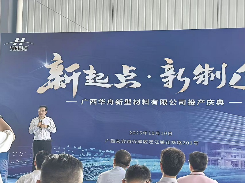 SMM10月11日讯: 2025年10月10日,广西华舟新型材料有限公司在来宾市兴宾区迁江工业园举行“新起点,新制造”投产庆典,标志着公司年产10万吨高性能特种合金材料项目(一期)正式投产。上海有色网信息科技股份有限公司华南办总经理谢修江、铝挤压板块负责人李焕宇受邀出席。 广西华舟新型材料有限公司成立于2023年12月,注册资本1000万元,为华舟控股(集团)有限公司全资子公司。2024年6月,公司以自有资金竞得迁江工业园80亩工业用地,建设高性能特种合金材料项目,第一期项目年产10万吨,计划2025年第三季度投产。 第一期项目产品主要为高性能铝合金熔铸棒,铝水资源依托广西投资集团来宾银海铝业50万吨电解铝项目。项目主要设备包括自动倾翻熔铸炉、炉底电磁搅拌、侧壁自动精炼机、自动喂丝机,在线自动除氢、双极过滤箱、高性能铸盘,自动液压深井铸锭机,铝棒自动锯切,热处理均质炉,并根据产品要求预留了管式过滤、油气滑铸盘等工装位。产品主要适用于高端电子工业铝型材、新能源汽车铝型材,高表面要求卫浴厨具铝材等。项目主要生产骨干具有10年以上铝合金熔铸经验。 |