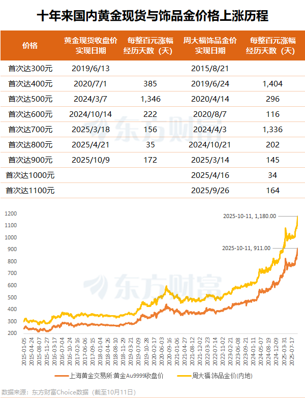 全球资产上周经历“黑色星期五”,金银价格却独领风骚。截至10月10日收盘,黄金现货报4017.845美元/盎司,涨1.05%,重回近期高位。伦敦银现货报50.126美元/盎司,涨1.87%。 上周,黄金、白银价格双双迎来历史性时刻,继10月8日现货黄金站上4000美元/盎司后,10月9日现货白银价格冲上51.08美元/盎司,打破历史纪录。白银现货今年以来的累计涨幅高达73.53%,超越黄金53%的涨幅,成为年内表现最亮眼的贵金属品种之一,年内涨幅仅次于铂金。 ![]() “今年以来,贵金属市场的强势表现主要受到投资需求激增推动,而央行持续购金则为金价上涨提供了信心支撑和底部保障。投资需求强劲的背后,是市场对美元货币体系信用、债务可持续性等长期问题的担忧,与以美联储为代表的宽松货币政策周期共振,同时也反映出短期内对贸易政策不确定性、美国政府停摆风险及地缘政治局势复杂化的避险需求。此外,从大类资产配置角度看,全球金融市场波动性上升,也增强了市场对贵金属等避险资产的配置需求。”南华期货贵金属新能源研究组负责人夏莹莹表示。 金价还能涨多高? 10月10日,全球股市遭遇“黑色星期五”普遍下跌,而伦敦黄金现货上涨1.05%,收报4017.85美元/盎司,仍站在超4000美元/盎司的高位上。 至此,现货黄金今年以来的涨幅已突破53%。尤其值得关注的是,现货黄金在今年3月14日首次突破3000美元/盎司大关后,仅用不到7个月的时间便一举冲上4000美元关口。 1月初与4月初,国际金价接连迎来两轮迅猛上涨行情,价格从年初的2600美元/盎司快速攀升至3400美元/盎司。经历了4个月3300美元/盎司左右的横盘后,9月2日现货黄金再次突破3500美元/盎司关口,并在9月6日冲上3600美元/盎司的历史新高。短短10日后的9月16日,伦敦现货黄金价格站上3700美元/盎司,9月23日一举冲破3800美元/盎司大关。10月8日,伦敦现货黄金价格首次站上4000美元整数关口,再创历史新高。 国内品牌金饰价格随之水涨船高,最新克价已经站上1180元/克。截至10月12日,老庙黄金足金饰品报价1183元/克,周大福、六福珠宝、金至尊均为1180元/克,周生生足金饰品报价1176元/克,老凤祥足金饰品报价1172元/克。 ![]() “今年以来,贵金属市场的强势表现主要受到投资需求激增推动,而央行持续购金则为金价上涨提供了信心支撑和底部保障。投资需求强劲的背后,是市场对美元货币体系信用、债务可持续性等长期问题的担忧,与以美联储为代表的宽松货币政策周期共振,同时也反映出短期内对贸易政策不确定性、美国政府停摆风险及地缘政治局势复杂化的避险需求。此外,从大类资产配置角度看,全球金融市场波动性上升,也增强了市场对贵金属等避险资产的配置需求。”南华期货贵金属新能源研究组负责人夏莹莹表示。 对于黄金资产的后续表现,多数机构依然长期持续看好。 瑞银财富管理分析称,本轮黄金上涨行情始于8月,当时美联储主席鲍威尔释放出降息信号。此外,世界黄金协会(WGC)数据显示,各国央行亦对金价形成支撑,2025年上半年央行购金总量达415吨,9月黄金交易所交易基金(ETF)录得历史最高净流入。 黄金价格创纪录的上涨反映出在经济不确定性增加和地缘政治变动背景下,投资者对防御性资产的需求显著上升。“鉴于今年涨势的规模与速度,短期内金价波动性可能加剧,但我们认为黄金仍具备基本面驱动的上涨空间。我们目前预测黄金价格将在未来数月内升至4200美元/盎司。从资产配置角度来看,分散化与对冲仍至关重要。我们维持对黄金‘具有吸引力’的观点。”瑞银财富管理表示。 美银策略师Michael Hartnett表示,市场对美联储新主席的预期、繁荣/泡沫政策、以及潜在的黄金价值重估等因素,都有利于所谓的“货币贬值交易”。 Hartnett指出,虽然历史不能预测未来,但在过去的4轮金价牛市中,黄金价格平均上涨约300%,周期为43个月。以此推算,这意味着到明年春天金价将达到6000美元。 国信证券最新研报指出,黄金第三浪的机会可能触发在海外人工智能科技浪潮筑顶带来的资金再分流,目前看并无征兆。避险情绪从地缘端扩散到资金流,目前尚未触发第三阶段信号。伴随美国三大股指下跌,避险情绪驱动黄金价格继续上涨,仍看好黄金中长期价格走势,居民资产配置中黄金的比例在2%-10%间较适宜,机构配置比例则可适当提升。 白银有望冲上55美元 与黄金“共舞”的还有白银,甚至比黄金的涨幅更为猛烈。 10月9日,现货白银价格涨4.4%报51.08美元/盎司,打破历史纪录。截至10月10日,伦敦现货白银报50.12美元/盎司,涨1.87%。 投资者仍在疯狂涌入,全球最大白银ETF-iShares持仓显示,10月10日白银ETF持仓15443.76吨,较年初增加逾1000吨,白银中长期投资需求旺盛。这推动白银现货今年以来的累计涨幅高达73.53%——即便黄金刚突破每盎司4000美元大关,白银依旧凭借更强的上涨动能,成为年内表现最亮眼的贵金属品种之一。 “白银的走强,既有来自与黄金驱动相似的投资需求激增,又有其自身供给弹性低、市场规模较小引发的高价格弹性特征。我们看到此轮贵金属上涨过程中,白银走势明显强于黄金,主要因白银自身品种特征差异。”夏莹莹分析称,“尽管贵金属普遍存在缺乏供给弹性的属性,但相较之下,白银盘子较小也意味着波动更大的特征。同时,由于衰退交易弱化,白银工业需求保持平稳,也强化了金银比修复的需求。第三,近期白银现货