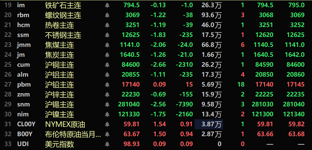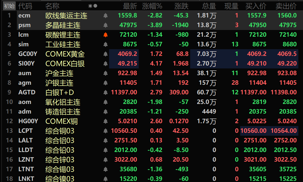 SMM10月13日讯: 金属市场方面: 截至午间收盘,内盘基本金属近全线下跌,沪铜跌2.66%。沪铝跌1.11%,沪铅微涨,沪锡跌2.56%,沪镍跌1.75%,沪锌跌0.69%。 此外,铸造铝主连期货跌1.21%,氧化铝主连跌1.98%。碳酸锂主连跌1.34%,工业硅主连跌0.57%。多晶硅主连跌3.89%。 黑色系均飘绿,铁矿跌0.13%,螺纹跌1.22%,热卷跌1.19%,不锈钢跌1.83%。双焦方面:焦煤主力合约跌2.06%,焦炭主力合约跌1.26%。 外盘金属方面,截至11:45分,LME金属涨跌互现,伦铜涨0.4%,伦铝涨0.13%,伦锌涨0.68%,伦铅跌0.42%,伦镍跌0.39%,伦锡跌1.36%。 贵金属方面,截至11:45分,COMEX黄金涨1.72%,COMEX白银涨4.17%。内盘贵金属方面:沪金主连涨1.49%,盘中刷新历史新高至923.18元/克;沪银主连涨1.71%。高盛(Goldman Sachs)周日表示,受私人投资流推动,白银价格中期预计将上涨,但警告称,与黄金相比,其短期波动性和下行风险更高。 截至午间收盘,欧线集运主力合约跌2.82%,报1559.8点。 截至10月13日11:45分,部分期货午间行情: 》10月13日SMM金属现货价格 现货及基本面 铜:今日华北地区1#电解铜现货对当月合约贴水180元/吨~贴水140元/吨,均价贴水160元/吨,较上一交易日涨50元/吨,成交价格84620-84980元/吨,均价84800元/吨较上一交易日跌1650元/吨。铜价回落给下游需求迎来一定提振……》点击查看详情 宏观面 国内方面: 【海关总署:前三季度我国货物贸易进出口同比增长4% 出口工业机器人增长54.9%】10月13日,国新办举行新闻发布会,海关总署副署长王军等介绍2025年前三季度进出口情况。今年前三季度,我国货物贸易进出口33.61万亿元,同比增长4%。其中,出口19.95万亿元,同比增长7.1%; 进口13.66万亿元,同比下降0.2%。9月当月,进出口4.04万亿元,同比增长8%。海关总署副署长王军表示,随着新质生产力不断发展,重点产业提质升级,我国出口产品的结构不断优化创新。我国制造的机器人应用场景更加丰富,不断走俏国际市场,前三季度,我国出口工业机器人增长54.9%。风电出海跑出了“加速度”,出口风力发电机组及零件增长了23.9%。此外,我国出口的龙舟、木雕、剪纸等非遗产品加入了当代的潮流元素,“老手艺”焕发了新活力,在海外广受欢迎。》点击查看详情 【央行公开市场今日净投放1378亿元】央行今日开展1378亿元7天逆回购操作,操作利率为1.40%,与此前持平。因今日无逆回购到期,当日实现净投放1378亿元。 ►10月13日银行间外汇市场人民币汇率中间价为1美元对人民币7.1007元 美元方面: 截至11:45分,美元指数涨0.09%,报98.93。 特朗普将其在美国政府停摆期间决定解雇数千名联邦雇员归咎于民主党。此次政府停摆始于10月1日,并已导致关键经济数据发布延迟。市场预计本月降息25个基点几乎已成定局,并预计12月将再次进行类似幅度的降息。美联储主席鲍威尔定于周二在NABE年会上发表讲话,这可能为货币宽松政策提供新的线索。本周还有其他多位美联储官员发表讲话。(文华综合) 其他货币方面: 尽管执政党新领导人试图安抚市场担忧,但日元兑美元汇率在周五早些时候跌至八个月来的新低。在此背景下,日本财务大臣加藤胜信加大了对日元走势的警告力度。加藤胜信表示:“我们目前看到市场出现单边且快速的波动。政府将密切关注市场中任何过度或无序的波动。”加藤胜信更坚定的措辞可能会加剧市场对日本正在接近货币干预的猜测。(汇通财经) 数据方面: 今日将公布中国9月M2货币供应年率(1013-1017几点不定)、中国9月社会融资规模-年初至今(1013-1017几点不定)、中国9月新增人民币贷款-年初至今(1013-1017几点不定)、美国9月非农就业人口变动季调后(10/13-10/15)、美国9月失业率(10/13-10/15)、美国截至10月4日当周初请失业金人数(10/13-10/15)、美国截至10月4日当周续请失业金人数(10/13-10/15)、美国8月批发库存月率终值(10/13-10/15)等数据。 此外,还需关注:国内成品油将开启新一轮调价窗口;国家能源局每月15日左右公布全社会用电量数据;世界银行和IMF举办2025年秋季年会,至10月18日,世界金融领导人将齐聚于此。 原油方面: 两油期货均上涨,截至11:45分,美油涨1.54%,布油涨1.5%。油价周一反弹,收复上周五因全球贸易紧张局势加剧而触及五个月低点的部分跌幅。市场关注国际贸易局势。与此同时,中东局势有所缓和,为市场带来一定稳定预期。(汇通财经) 据海关总署网站10月13日发布的数据显示,中国9月原油进口量为4,725.20万吨,1-9月累计进口量为42,299.70万吨,同比增加2.6%。 现货市场一览: ►铜价回落后持货商补货积极性上升 交投情绪好转【SMM华南铜现货】 ►铜价回落需求略有恢复 现货升贴水回升【SMM华北铜现货】 ►再生铅:部分下游企业今日刚需补库 采购积极性向好【SMM铅午评】 ►SMM七地锌锭社会库存增加1.29万吨【SMM数据】 ►天津锌:下游刚需采购 成交一般【SMM午评】 ►宏观避险情绪主导锡价承压 供需双弱格局限制反弹空间【SMM锡午评】 ►【SMM镍午评】10月13日镍价大幅下跌,特朗普声称对中国商品全面征收100%关税 ►【SMM MHP日评】10月13日 MHP价格因钴价上行而上行 ►海外交割困难尚未缓和银价再刷新高 现货市场供不应求升水抬高【SMM日评】 |