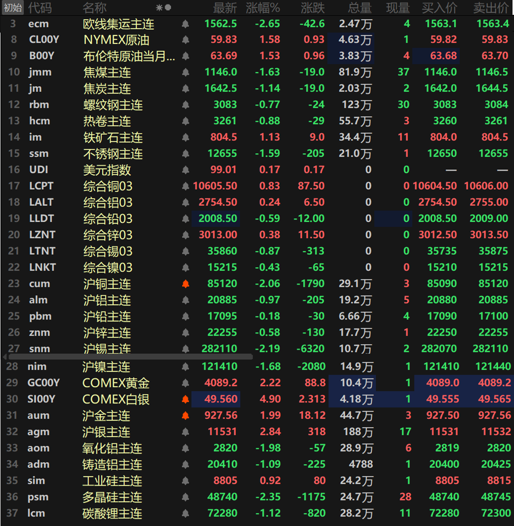 SMM 10月13日讯: 金属市场: 截至日间收盘,内盘基本金属集体下跌,沪锡以高达2.19%的跌幅领跌,沪镍跌1.68%,沪铜跌2.06%,其余金属跌幅均在1%以内。氧化铝主连跌1.98%,铸造铝主连跌1.09%。 此外,碳酸锂主连跌1.12%,工业硅涨0.92%,多晶硅跌2.35%。欧线集运主连跌2.65%报1562.5。 黑色系方面除了铁矿石外均下跌,铁矿涨1.13%。不锈钢跌1.59%,热卷、螺纹跌幅在1%以内。双焦方面,焦煤跌1.63%,焦炭跌1.14%。 外盘方面,截至15:03分,外盘基本金属涨跌互现,伦铜涨0.83%,伦锌涨0.38%,伦锡以0.87%的跌幅领跌,其余金属涨幅波动均不大。 贵金属方面,截至15:03分,COMEX黄金涨2.22%,其盘中最高冲至4096.5美元/盎司,续刷其上市以来的历史新高;COMEX白银涨4.9%。国内方面,沪金涨1.99%,其盘中最高冲至928.88元/克,同样续刷其上市以来的历史新高;沪银涨2.84%,盘中最高冲至11584元/千克,同样刷新其历史记录。 截至今日15:03分行情 》点击查看SMM行情看板 宏观面 国内方面: 【海关总署:前三季度我国货物贸易进出口同比增长4% 出口工业机器人增长54.9%】10月13日,国新办举行新闻发布会,海关总署副署长王军等介绍2025年前三季度进出口情况。今年前三季度,我国货物贸易进出口33.61万亿元,同比增长4%。其中,出口19.95万亿元,同比增长7.1%; 进口13.66万亿元,同比下降0.2%。9月当月,进出口4.04万亿元,同比增长8%。海关总署副署长王军表示,随着新质生产力不断发展,重点产业提质升级,我国出口产品的结构不断优化创新。我国制造的机器人应用场景更加丰富,不断走俏国际市场,前三季度,我国出口工业机器人增长54.9%。风电出海跑出了“加速度”,出口风力发电机组及零件增长了23.9%。此外,我国出口的龙舟、木雕、剪纸等非遗产品加入了当代的潮流元素,“老手艺”焕发了新活力,在海外广受欢迎。》点击查看详情 【央行公开市场今日净投放1378亿元】央行今日开展1378亿元7天逆回购操作,操作利率为1.40%,与此前持平。因今日无逆回购到期,当日实现净投放1378亿元。 ►10月13日银行间外汇市场人民币汇率中间价为1美元对人民币7.1007元 美元方面: 截至15:03分,美元指数上涨0.17%报99.01,美联储年内继续降息预期较强。美国国会参议院此前多次就临时拨款法案进行表决,但共和党和民主党各自推动的草案均未获通过,联邦政府停摆态势延续,美国总统特朗普上周五兑现了他在政府停摆期间裁减联邦雇员的威胁,并将裁员决定归咎于民主党。 此次政府停摆始于10月1日,并已导致关键经济数据发布延迟。市场预计本月降息25个基点几乎已成定局,并预计12月将再次进行类似幅度的降息。美联储主席鲍威尔定于周二在NABE年会上发表讲话,这可能为货币宽松政策提供新的线索。本周还有其他多位美联储官员发表讲话。(文华综合) 宏观方面: 今日将公布中国9月M2货币供应年率(1013-1017几点不定)、中国9月社会融资规模-年初至今(1013-1017几点不定)、中国9月新增人民币贷款-年初至今(1013-1017几点不定)、美国9月非农就业人口变动季调后(10/13-10/15)、美国9月失业率(10/13-10/15)、美国截至10月4日当周初请失业金人数(10/13-10/15)、美国截至10月4日当周续请失业金人数(10/13-10/15)、美国8月批发库存月率终值(10/13-10/15)等数据。 此外,还需关注:国内成品油将开启新一轮调价窗口;国家能源局每月15日左右公布全社会用电量数据;世界银行和IMF举办2025年秋季年会,至10月18日,世界金融领导人将齐聚于此。 原油方面: 截至15:03分,两市油价一同上涨,美油涨1.58%,布油涨1.53%。投资者寄望于贸易局势改善。 由于周一是美国公共假日,美国原油合约将于周二结算。独立分析师Tina Teng指出,“预计价格走势仍会呈现波动,认为原油或任何其他风险资产都不会这么快扭转跌势。” 中国海关总署网站周一发布数据显示,中国9月原油进口量为4,725.20万吨,1-9月累计进口量为42,299.70万吨,同比增加2.6%。(文华综合) SMM日评 ►【SMM MHP日评】10月13日 MHP价格因钴价上行而上行 ►【SMM硫酸镍日评】10月13日 镍盐价格有所上涨 ►海外交割困难尚未缓和银价再刷新高 现货市场供不应求升水抬高【SMM日评】 ►稀土价格持续走弱 市场观望情绪浓厚【SMM稀土日评】 |