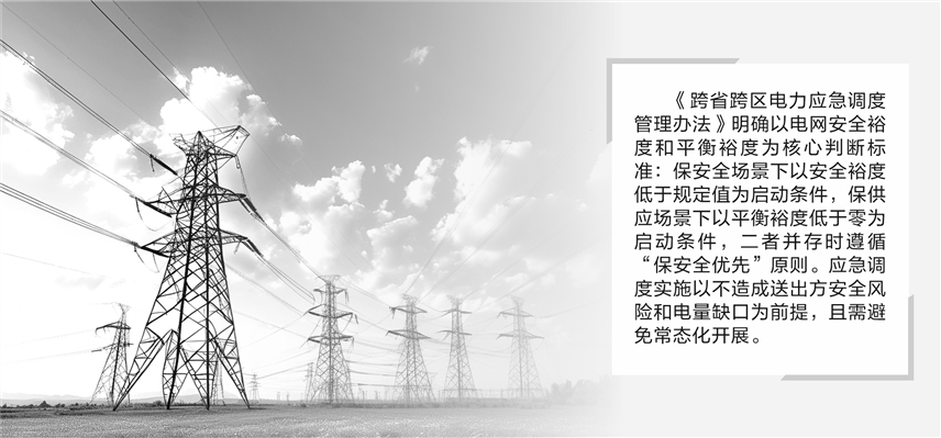 证券时报记者 韩忠楠 电力安全、稳定供应始终是关乎国计民生的关键环节,今年以来,围绕电力市场的改革措施不断。近日,国家发展改革委、国家能源局印发《跨省跨区电力应急调度管理办法》(以下简称《办法》),旨在进一步健全电力应急机制,规范跨省跨区电力应急调度管理。 国家发展改革委相关负责人表示,作为我国首部国家层面的跨省跨区电力应急调度规范性文件,《办法》的出台有利于提升工作的规范性有效性,强化应急调度在市场化手段不能解决电力安全保供问题时,深入挖掘全网资源以实现兜底保障的作用,促进电力资源在更大范围内高效流动。 据悉,该《办法》已于今年10月1日正式实施,有效期长达五年,将在未来一段时期内,为保障电力安全稳定供应发挥关键作用。 具体来看,《办法》清晰界定了跨省跨区电力应急调度的内涵,确立了“市场调节优先、应急调度兜底”的核心原则。明确当电力运行存在安全风险或电量平衡缺口时,需优先通过中长期交易、现货交易等市场化手段配置资源,仅在市场化手段无法完全解决问题时,才由电力调度机构组织实施应急调度。 这一设定既顺应了全国统一电力市场建设方向,又强化了应急调度的兜底保障功能。 同时,《办法》构建了权责清晰的分级组织实施体系。国家发展改革委负责应急调度管理与指导协调,国家能源局及其派出机构承担执行、结算、信息披露等监管职责,各省电力运行主管部门及电网企业则负责统筹本地区、本经营区相关工作。 在启动条件上,《办法》明确以电网安全裕度和平衡裕度为核心判断标准:保安全场景下以安全裕度低于规定值为启动条件,保供应场景下以平衡裕度低于零为启动条件,二者并存时遵循“保安全优先”原则。应急调度实施以不造成送出方安全风险和电量缺口为前提,且需避免常态化开展。 为保障应急调度可持续实施,《办法》还建立了科学合理的价格与结算体系,遵循“谁支援、谁获利,谁受益、谁承担”原则:当落地电价扣除各项成本后为正时,收益由送出省用户和发电企业共享,分享比例为80%、20%;当二者差价为负时,则由受入省用户分摊。同时《办法》明确应急调度电量不纳入辅助服务费用分摊及偏差电量考核,确保结算公平合理。 国家发展改革委相关负责人介绍,此前发改委与能源局出台的多项政策,已有效保障了跨区电力运行,成功应对了多轮次度夏、度冬大负荷考验。 据悉,此前,跨区电力运行单日通过挖掘全网潜力,已消除各地电力缺口最大超过1300万千瓦。此次发布的《办法》是在此前政策的基础上的进一步完善和细化。 上述负责人表示,全国统一电力市场建设的不断深入,需要更好地发挥应急调度兜底保障电力安全稳定供应作用,强化应急调度与电力市场的有效衔接,而此次发布的《办法》恰好是为了规范市场,进一步筑牢电网安全稳定运行底线。 据悉,下一步,国家发展改革委将会同有关方面持续跟踪《办法》落实情况,加强对应急调度工作的指导,提升保供韧性与抗风险能力。 |