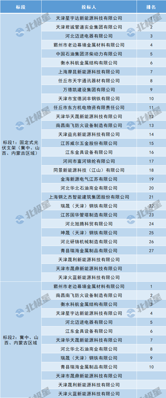 10月12日,华北油田公司2025年A28大类光伏支架集中采购公示中标候选人。 根据公示,其中招标第一标包固定式光伏支架(冀中、山西、内蒙古区域),实际参加投标的30家,27家企业入围。第二标包废旧油管改造光伏支架(冀中、山西、内蒙古区域),参加投标13家,10家企业入围。 根据招标公告,华北油田公司2025年A28大类光伏支架集中采购,共2个标包。 第一标包:固定式光伏支架(冀中、山西、内蒙古区域),1项物资,估算金额:2053.2万元; 第二标包:废旧油管改造光伏支架(冀中、山西、内蒙古区域),1项物资,估算金额:1520万元。 交货地点:送货至华北油田公司各区域(包含但不限于河北、内蒙古、山西、河南等)。 |