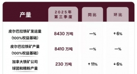 据力拓集团消息:力拓公布2025年第三季度生产业绩,全业务板块保持强劲生产业绩。 力