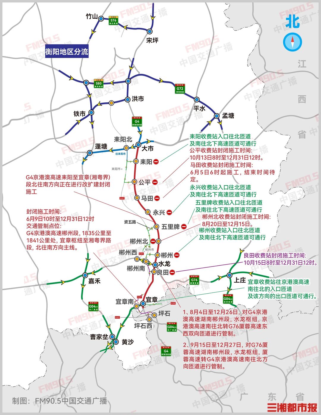 10月14日,记者从湖南高速集团郴州分公司获悉,为保障G4京港澳高速耒阳大市至宜章(湘粤界)段改扩建工程顺利推进,自10月15日起,将对该高速郴州段的良田收费站进行封闭施工。封闭施工时间为10月15日8时至12月31日12时,期间禁止所有车辆通行,过往车辆需提前规划绕行路线。 需特别注意的是,本次交通管制期间,良田收费站连接线1公里处至收费站外广场段车道将同步划为施工区域,区域内居民日常通行不受影响。 绕行线路如下: 请驾驶员沿着良田大道往长沙、郴州方向行驶,经槐万路、郴江中路、郴江路、郴州大道,从郴州收费站上G4京港澳高速继续北上通行。  |