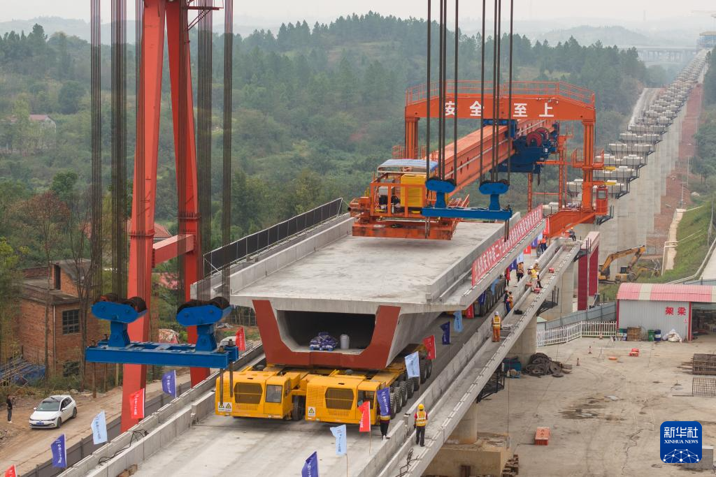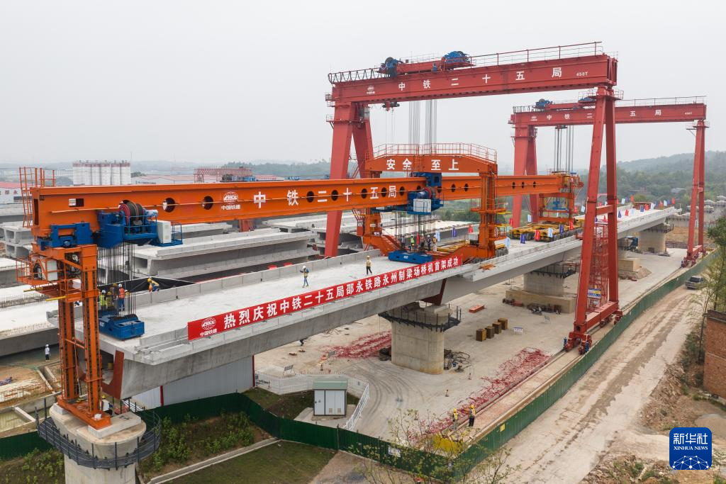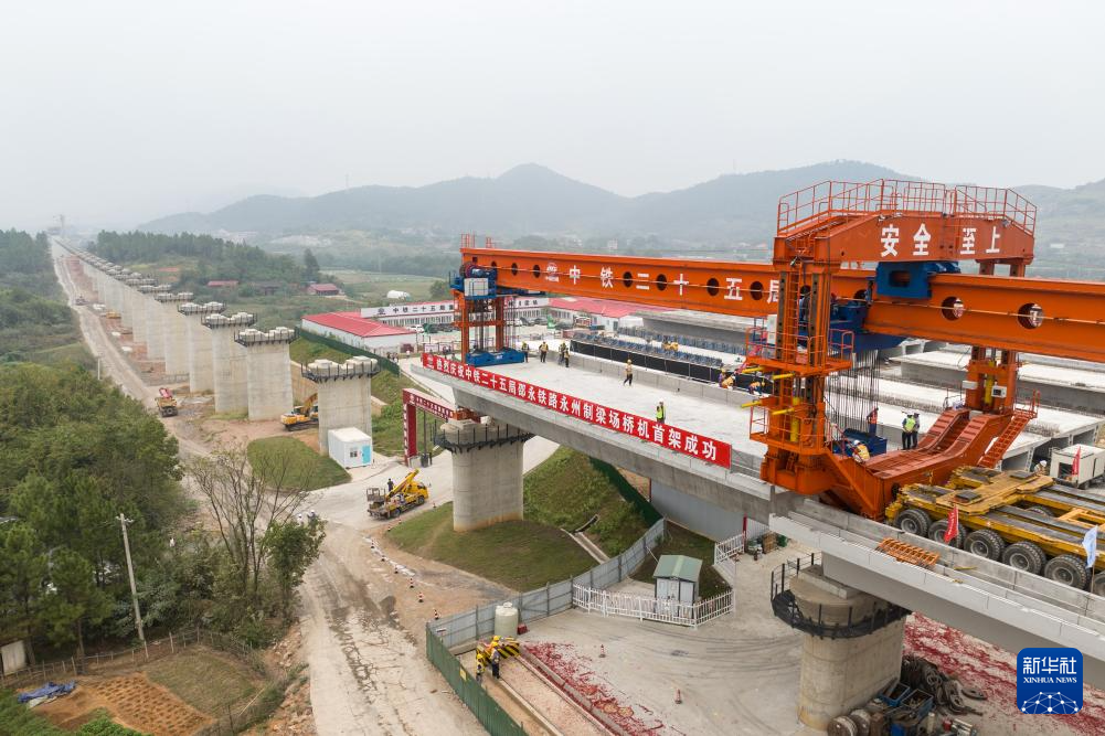 这是10月13日拍摄的邵永高铁跨芦洪江特大桥架梁施工现场(无人机照片)。新华社记者 陈思汗 摄 10月13日,在位于湖南省永州市的邵(阳)永(州)高铁跨芦洪江特大桥施工现场,一榀长32.6米、重近817吨的箱梁平稳架设,标志着由中铁二十五局承建的邵永高铁三标正式开始架梁,该条新建铁路进入了架梁施工高峰阶段。 邵永高铁全长约96公里,设计时速350公里,是我国“八纵八横”高铁网中呼和浩特至南宁通道的重要组成部分,北连娄底至邵阳铁路,南接衡阳至柳州铁路。邵永高铁建成后,对完善区域铁路网布局、促进中部地区高质量发展具有重要意义。 这是10月13日拍摄的邵永高铁跨芦洪江特大桥架梁施工现场(无人机照片)。新华社记者 陈思汗 摄 这是10月13日拍摄的邵永高铁跨芦洪江特大桥架梁施工现场(无人机照片)。新华社记者 陈思汗 摄 这是10月13日拍摄的邵永高铁跨芦洪江特大桥架梁施工现场(无人机照片)。新华社记者 陈思汗 摄 10月13日,中铁二十五局工人在邵永高铁跨芦洪江特大桥架梁施工现场作业。新华社记者 陈思汗 摄 10月13日,中铁二十五局工人在邵永高铁跨芦洪江特大桥架梁施工现场作业。新华社记者 陈思汗 摄 |