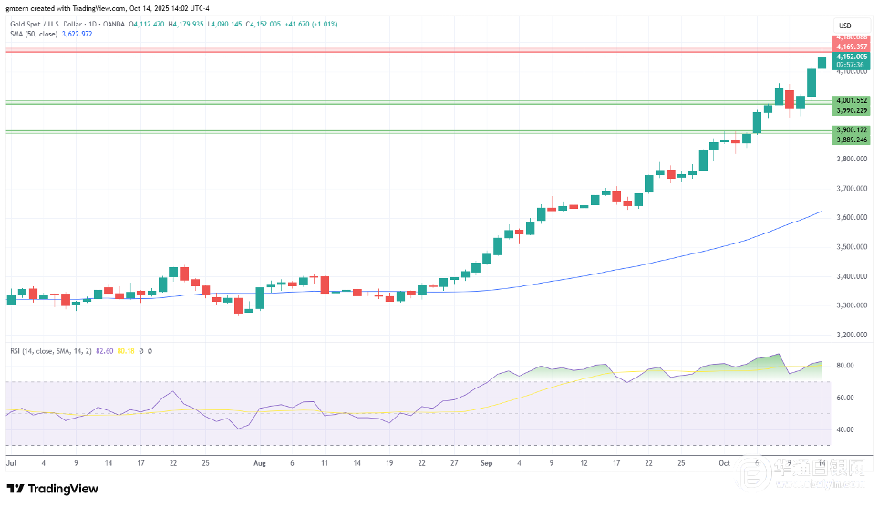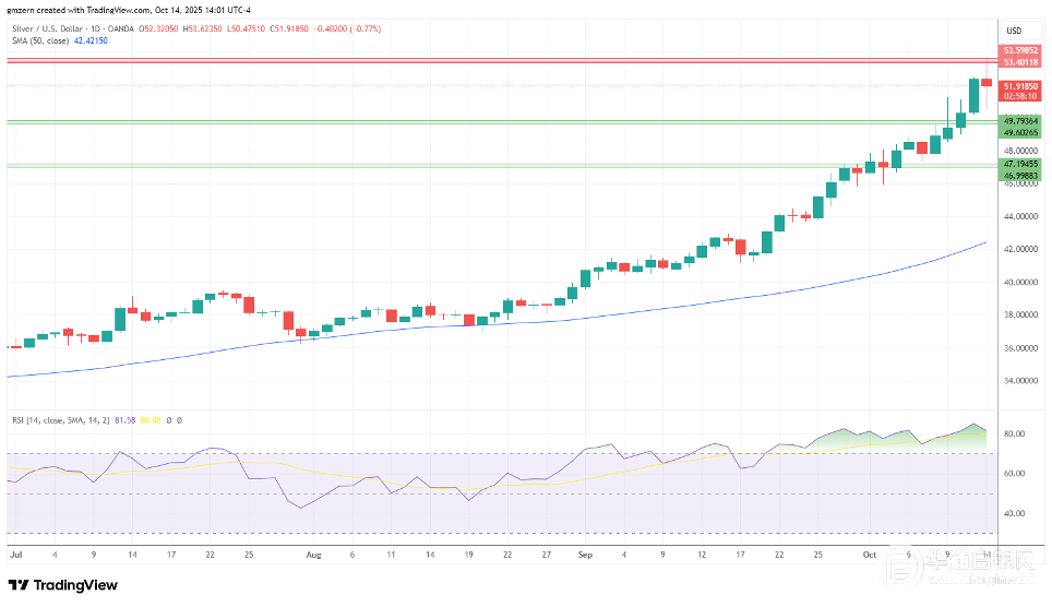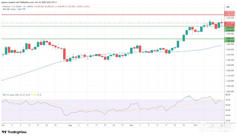 【华通白银网10月15日讯】•黄金测试阻力位在4170-4180美元。 •由于获利回吐,白银跌向52.00美元水平。 •铂金试图收于1690美元上方,但失去动力并回落。 黄金 鲍威尔指出,如果美联储行动缓慢,劳动力市场可能会面临压力,交易员对鲍威尔的言论做出反应,金价创下新高。 如果黄金成功测试4170-4180美元阻力位,则将向4200美元水平移动。 白银 银价屡创新高,但失去动能并回落,因交易商在强劲反弹后了结部分获利。 如果白银跌破51.00美元水平,则将向最近的支撑位49.60-49.80美元移动。 铂金 铂金在上涨和下跌之间摇摆,交易商在多年高位附近了结获利。 突破1680美元将为测试1730-1735美元阻力位开辟道路。 美国时间10月14日,全球最大白银ETF——iShares Silver Trust的白银持仓量为15733.09吨,较前一交易日减少21.17吨。全球最大黄金ETF—SPDR GOLD TRUST的黄金持仓量为1021.45吨,较前一交易日增加2.57吨。 白银网 |