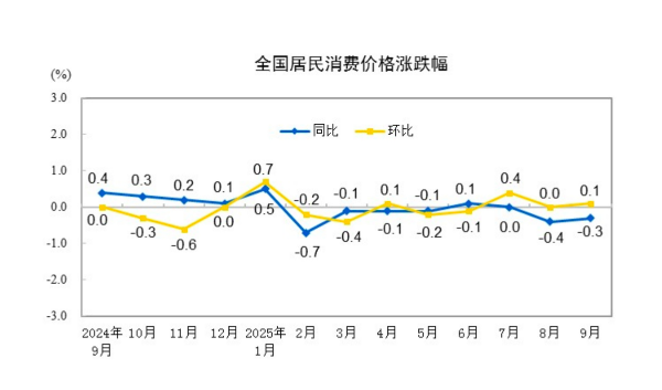 受益于低基数以及反内卷和促消费政策进一步显效,9月居民消费价格指数(CPI)和工业品出厂价格指数(PPI)同比降幅均有所收窄。 国家统计局10月15日发布的数据显示,9月CPI环比由上月持平转为上涨0.1%,同比下降0.3%,降幅比上月收窄0.1个百分点。PPI环比继续持平,同比下降2.3%,降幅比上月收窄0.6个百分点。 扣除食品和能源价格的核心CPI同比上涨1.0%,涨幅连续第5个月扩大,为近19个月以来涨幅首次回到1%。 国家统计局城市司首席统计师董莉娟分析,CPI同比下降,主要是翘尾影响所致。本月CPI-0.3%的同比变动中,翘尾影响约为-0.8个百分点,今年价格变动的新影响约为0.5个百分点。其中,食品价格下降4.4%,降幅比上月扩大0.1个百分点,是影响CPI同比下降的主要因素。 由于CPI中食品、能源价格受短期因素影响较大,观察价格变化,不仅要看CPI总的变化,还要看核心CPI的变化,核心CPI更能反映物价变化趋势。9月份,扣除食品和能源价格的核心CPI同比上涨1.0%,涨幅连续第5个月扩大。其中,扣除能源的工业消费品价格上涨1.8%,涨幅连续第5个月扩大。服务价格上涨0.6%,涨幅较为稳定,其中医疗服务和家庭服务价格分别上涨1.9%和1.6%,宾馆住宿和飞机票价格分别下降1.5%和1.7%。 国家统计局新闻发言人付凌晖日前在国新办发布会上表示,价格的积极变化在继续累积。核心CPI同比涨幅扩大,主要是工业消费品价格和服务价格回升带动。从近期情况看,推动CPI合理回升的有利因素较多。也要看到,市场供求关系仍较突出,居民消费价格运行仍处于低位。 PPI方面,PPI环比连续两个月持平。董莉娟分析,一是供需结构改善带动部分行业价格明显企稳。二是输入性因素影响国内石油相关行业价格环比下降。国际油价下行带动国内石油相关行业价格环比下降。 9月PPI同比下降2.3%,降幅比上月收窄0.6个百分点。董莉娟分析,除受上年同期对比基数走低影响外,我国各项宏观政策效果持续显现,一些行业价格呈现积极变化。全国统一大市场建设纵深推进带动相关行业价格同比降幅收窄。部分行业产能治理成效显现,市场竞争秩序持续优化,价格同比降幅收窄。 数据显示,煤炭加工、黑色金属冶炼和压延加工业、煤炭开采和洗选业、光伏设备及元器件制造、电池制造、非金属矿物制品业价格降幅比上月分别收窄8.3个、3.4个、3.0个、2.4个、0.5个和0.4个百分点,上述6个行业对PPI同比的下拉影响比上月减少约0.34个百分点。 此外,产业结构升级和消费潜力释放带动相关行业价格同比上涨。董莉娟分析,现代化产业体系加快构建,制造业高端化、智能化、绿色化发展向好,市场需求稳步扩大,飞机制造价格同比上涨1.4%,电子专用材料制造价格上涨1.2%。提振消费等政策效应继续显现,品质化、升级类消费需求释放,工艺美术及礼仪用品制造价格上涨14.7%,运动用球类制造价格上涨4.0%,营养食品制造价格上涨1.8%。 东方金诚研究发展部执行总监冯琳表示,在去年同期基数下行,“反内卷”政策限制部分行业产能释放,以及稳增长政策有望发力等因素影响下,四季度PPI同比降幅有望收窄至-2.0%以内。 国家金融与发展实验室特聘高级研究员庞溟告诉第一财经,随着一系列扩内需、促消费政策持续发力显效,消费市场平稳增长,消费新动能持续壮大,叠加全国统一大市场建设深入推进、对企业低价无序竞争的治理力度进一步加大,社会需求持续回暖、物价运行信号更加积极。 |