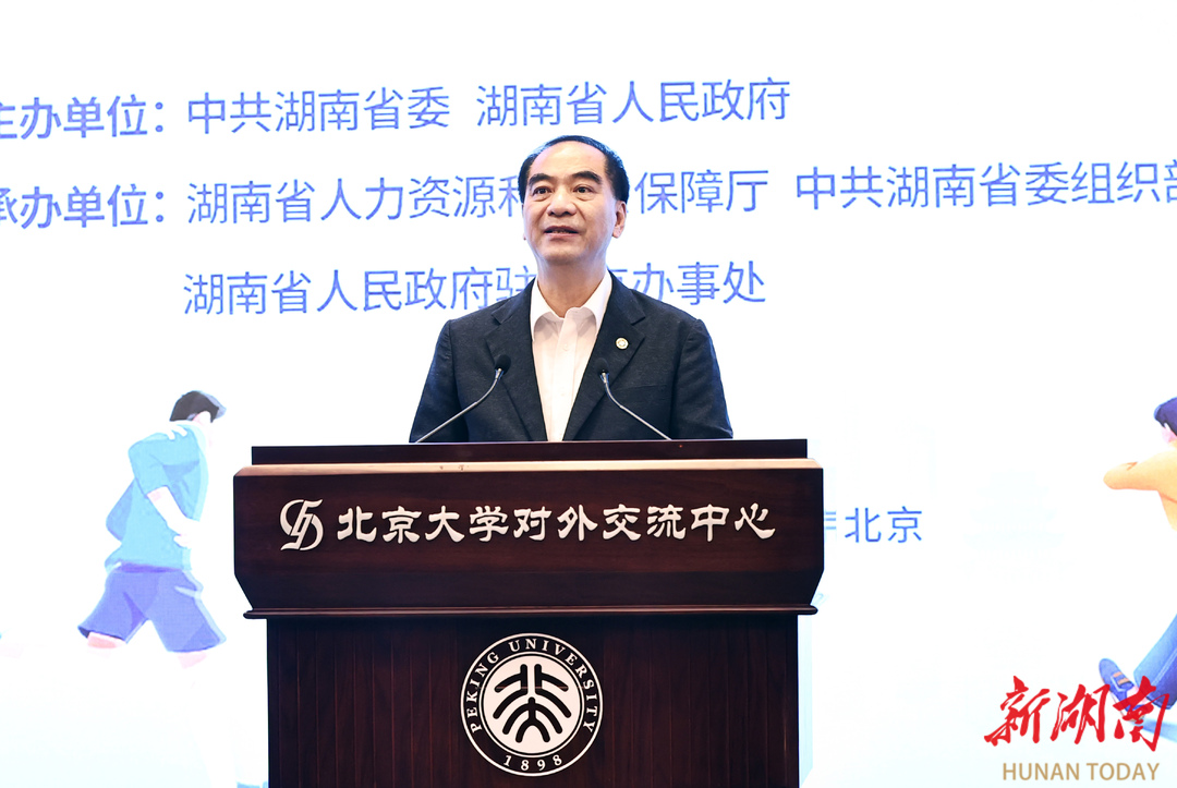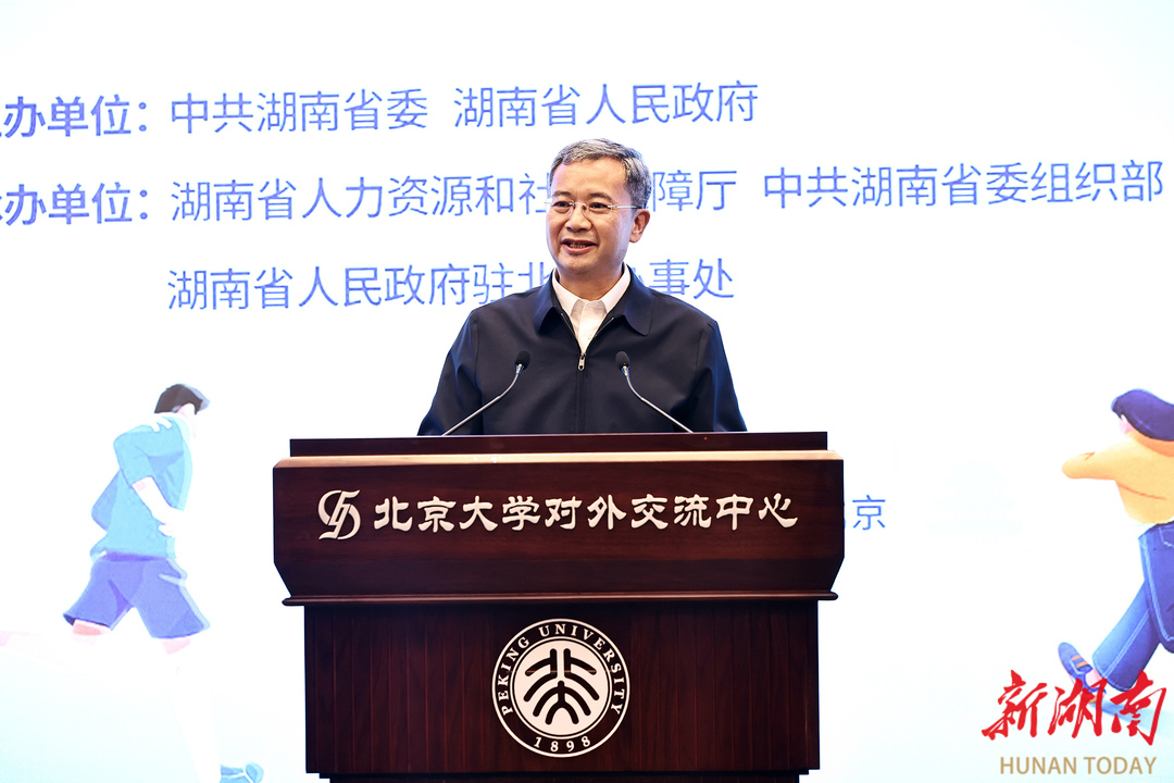 “智汇潇湘 才聚湖南”北京站专场招聘活动举行 让我们向着未来出发,去湖南! 毛伟明出席并讲话 (推介大会现场。) 10月12日,“智汇潇湘 才聚湖南”北京站专场招聘活动在北京大学举行。省委副书记、省长毛伟明盛情邀请广大学子向着未来出发去湖南,在谱写中国式现代化湖南篇章中挥洒青春、成就梦想。本次招聘活动共拿出1万个以上优质岗位,邀请了北京高校的1万名以上学生参加。 教育部副部长熊四皓,北京大学校长龚旗煌,副省长王俊寿,省政府秘书长瞿海,在京高校有关负责同志出席活动。 (毛伟明讲话。) 推介大会上,毛伟明用“眼中的湖南”“心中的希望”“远方的呼唤”三句话向广大在京学子发出邀约。他介绍,湖南有着悠久的历史文化、厚重的革命文化、活跃的现代文化。近年来,湖南锚定“三高四新”美好蓝图,综合实力实现新跨越、发展动能实现新突破、发展环境实现新跃升。站在新的历史起点,湖南潜力无限、前景无限、机遇无限,正抢抓改革开放的时代机遇、激荡创新创造的澎湃活力、铺陈绿水青山的秀美画卷、续写安居乐业的幸福华章。 (推介大会现场。) “只要你来湖南,就一定会找到大放异彩的舞台;只要你是一颗种子,就一定能破土而出、茁壮成长!”毛伟明说,希望大家积极投身到湖南高质量发展的火热实践中来,争当产业发展的“生力军”、科技创新的“探路人”、改革开放的“弄潮儿”,与湖南共同擦亮幸福成色、创造美好明天。湖南将以“真金白银”集聚人才、以“真心实意”招引人才、以“真招实策”服务人才,推出创新创业“七个一”行动,打造“24小时不打烊”招聘平台,为大家来湘发展提供全方位支持、全领域托举、全过程保障。 (熊四皓讲话。) 熊四皓说,湖南创新开展“智汇潇湘才聚湖南”行动,是贯彻落实党中央、国务院实施就业优先战略,促进高校毕业生高质量充分就业的重要举措。希望广大毕业生把握机遇,走进湖南、扎根湖南,与湖南共创美好未来;希望各用人单位积极揽才、大胆用才、悉心育才,让更多青年英才在湘建功立业;希望高校加强就业创业指导服务,引导毕业生将个人理想融入国家发展大局;希望各地加力落实招才引才优惠政策、搭建供需对接平台,为高校毕业生高质量充分就业提供更多机会。 (龚旗煌致辞。) 龚旗煌说,湖南与北京大学渊源深厚,从长沙临时大学的并肩守望,到新时代产学研的同频共振,双方铸就了深厚的历史情谊与坚韧的精神纽带。此次湖南专场招聘来到北京,是扩大并深化校地合作的具体体现。我们鼓励支持更多青年学子选择湖南,为湖南经济社会发展贡献青春力量。希望广大学子胸怀“国之大者”、在时代主题中找准人生坐标,面向新质生产力、在关键急需产业中淬炼真本领,到祖国最需要的地方去、在扎根实践中成就更大作为。 (毛伟明与北京高校代表、湘籍院士专家座谈。) (毛伟明会见龚旗煌。) 相关企业、单位负责人作为创业和就业代表发言。推介会前,毛伟明还会见了龚旗煌一行,并与北京部分高校代表和湘籍院士专家座谈,就进一步优化就业创业环境、完善政策支持、加强服务保障等听取意见建议。 (毛伟明、龚旗煌一行参观招聘会现场。) |