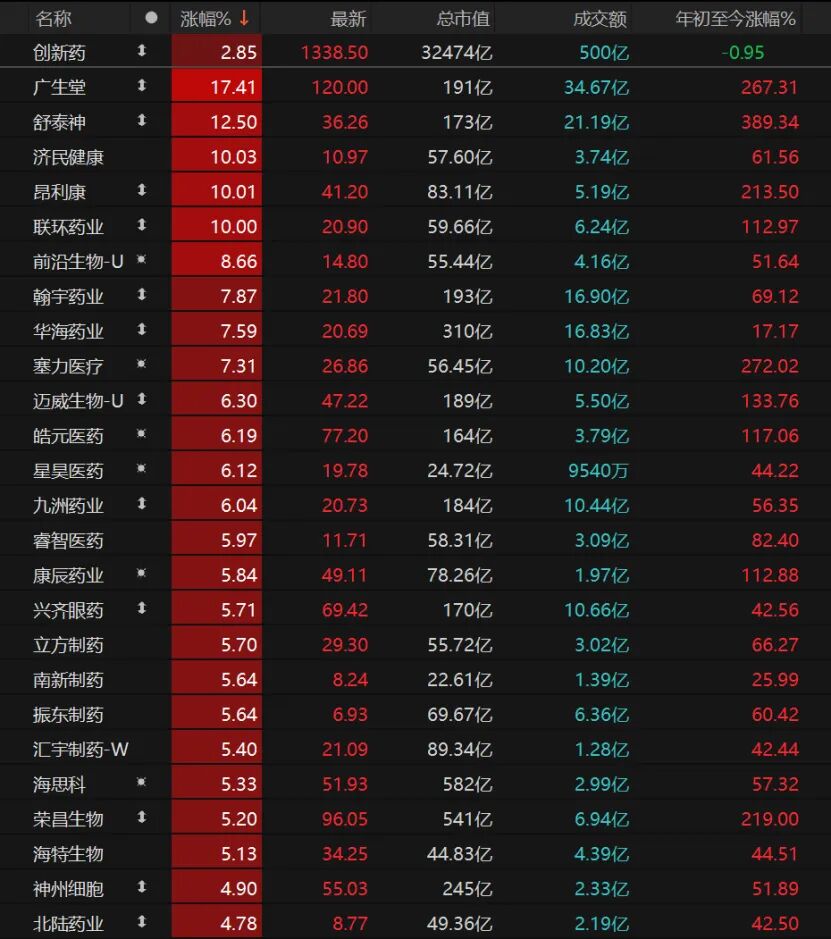 近期,创新药板块经历了一定的回调,不过今天该板块迎来了上涨。其中,济民健康、昂利康、联环药业涨停,广生堂、舒泰神大涨。
