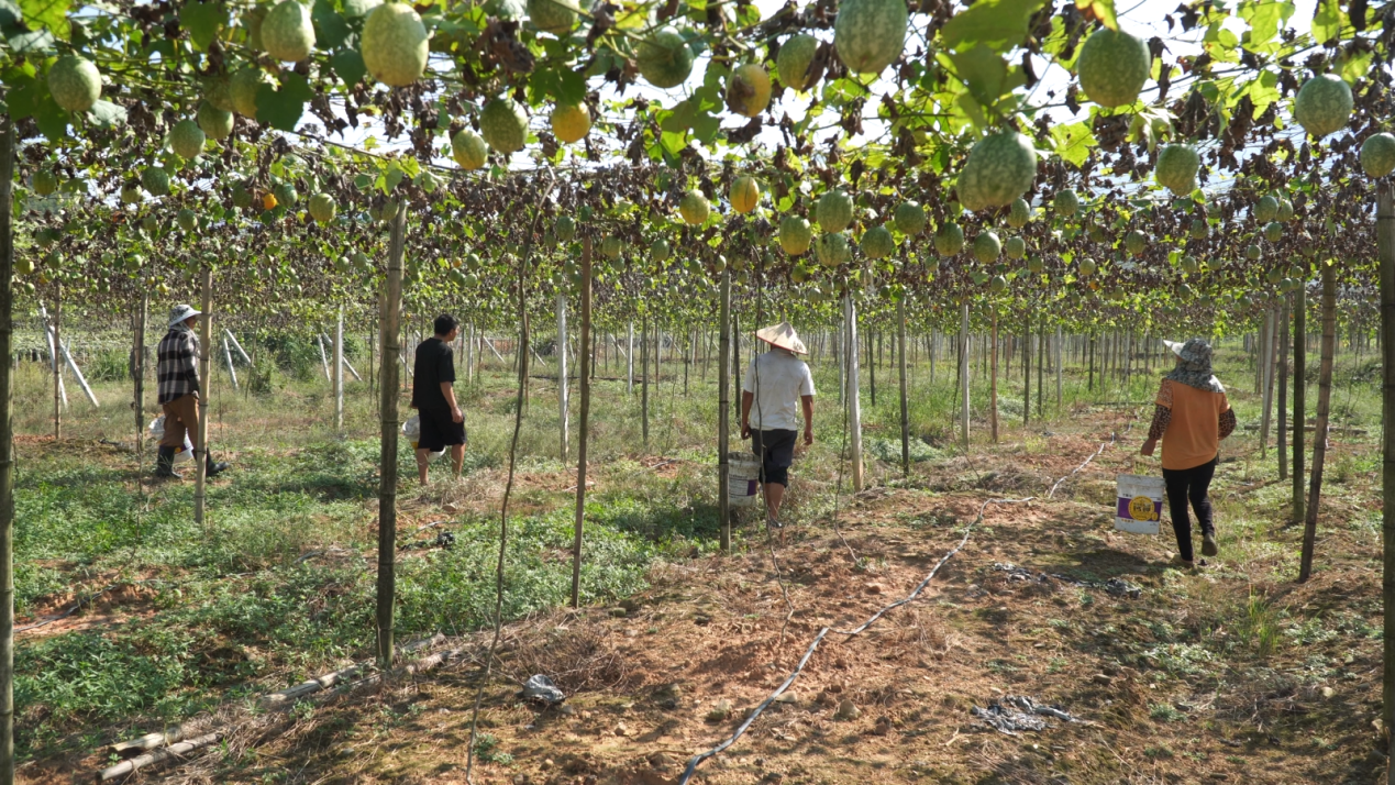 10月15日,走进湖南省江华瑶族自治县大路铺镇牛角湾村吊瓜种植基地,一排排整齐的棚架映入眼帘,藤蔓缠绕其间。藤蔓下,圆滚滚的瓜蒌挂满枝头,有的金黄诱人,有的还披着鲜嫩的绿色“外衣”。 村民们穿梭于藤蔓之间,娴熟地采摘着成熟的吊瓜,装桶搬运;加工区内,大家麻利地筛选、清洗,洗净的湿籽装袋后便被运往晾晒场。 村民采摘吊瓜现场(朱婷 摄) “今年总面积有210多亩,现在已经进入第三批和第四批的采摘期了,雇佣本村村民十余人,干籽产量200—300斤,今年市场大概在18—20元一斤,纯利润大概2000—3000元一亩。”种植户赵江雄说道。 乡村振兴靠产业,产业振兴靠特色。近年来,随着农业结构的调整和特色种植业的兴起,水稻、玉米等常规经济作物不再是江华农户的唯一选择。吊瓜作为一种药食两用的经济作物,逐渐成为该县农户致富的新选择。 赵江雄晾晒瓜籽现场(杨露 摄) 吊瓜能在市场上站稳脚跟,既源于严格的品质把控,更因其独特的价值属性。作为多年生植物,一次栽种可连续多年受益,其皮、仁、根茎均可入药,吊瓜籽更可作为休闲零食,市场潜力巨大,发展前景广阔。 吊瓜航拍图(杨露 摄) 随着种植技术的成熟、管理水平的提升以及种植规模的稳定运营,今年码市、大路铺等乡镇的吊瓜基地呈现出“量效齐升”的良好态势,不仅彰显了吊瓜种植产业的发展潜力,也为后续扩大种植规模、延伸产业链奠定了坚实的经济基础,更为当地乡村产业振兴注入了持续动力。 |