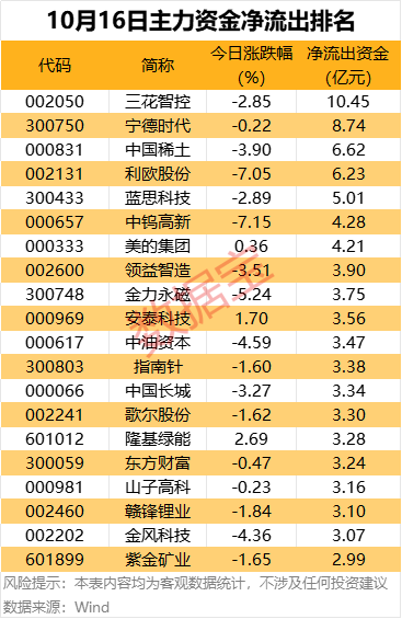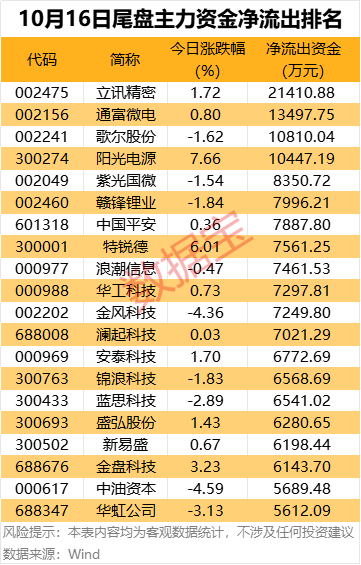 今日(10月16日),A股三大指数涨跌不一,行业板块涨少跌多,保险、煤炭行业、航运港口、银行板块涨幅居前,小金属、贵金属、风电设备、钢铁等跌幅居前。 从资金情况来看,沪深两市全天主力资金净流出385.88亿元。仅有通信、医药生物2个行业主力资金净流入,金额分别为11.21亿元、3.76亿元。 29个主力资金净流出行业中,电力设备、有色金属行业净流出金额居前,金额均超50亿元;电子、机械设备、计算机、非银金融行业净流出金额均超20亿元。 9股获主力资金净流入超4亿元 从个股看,44股主力资金净流入超1亿元,9股获主力资金净流入超4亿元。 长安汽车主力资金净流入11.2亿元。10月16日,在2025世界智能网联汽车大会(WICV)上,长安汽车董事长朱华荣公布未来五年战略:2028年量产下线人形机器人,2030年推出航线飞行汽车产品并商业化运作。 中兴通讯主力资金净流入10.43亿元。近日公司在投资者互动平台表示,在算力领域,全资子公司中兴微电子自研领域定制处理器芯片,可对大规模数据处理、视频编解码、云游戏等类企业级应用场景提供更低的总体拥有成本(TCO);自研DPU定制芯片,支持RDMA标卡、智能网卡、DPU卡等多种形态,提供高性能、多样化算力加速硬件;自研天屹以太网交换芯片,为算力和通信核心网提供高效互联支持。目前,上述芯片已实现部署应用。 19股主力资金净流出超3亿元,三花智控、宁德时代、中国稀土、利欧股份、蓝思科技、中钨高新、美的集团等净流出金额均超4亿元。 3股尾盘主力资金净流入超1亿元 尾盘沪深两市主力资金净流出57.78亿元,计算机行业尾盘净流入超3亿元,医药生物、食品饮料、煤炭等行业净流入金额不超过1亿元。 个股方面,常山北明、胜宏科技、中兴通讯尾盘主力资金净流入超1亿元。尾盘鸿蒙概念异动拉升,常山北明直线涨停,龙虎榜数据显示,今日上榜席位全天成交9.32亿元,合计净买入5.21亿元;具体来看,广发证券深圳福华一路证券营业部、国投证券西安朱雀大街证券营业部分别净买入2.65亿元、1.5亿元。 净流出方面,立讯精密、通富微电、歌尔股份、阳光电源尾盘主力资金净流出均超1亿元。 |