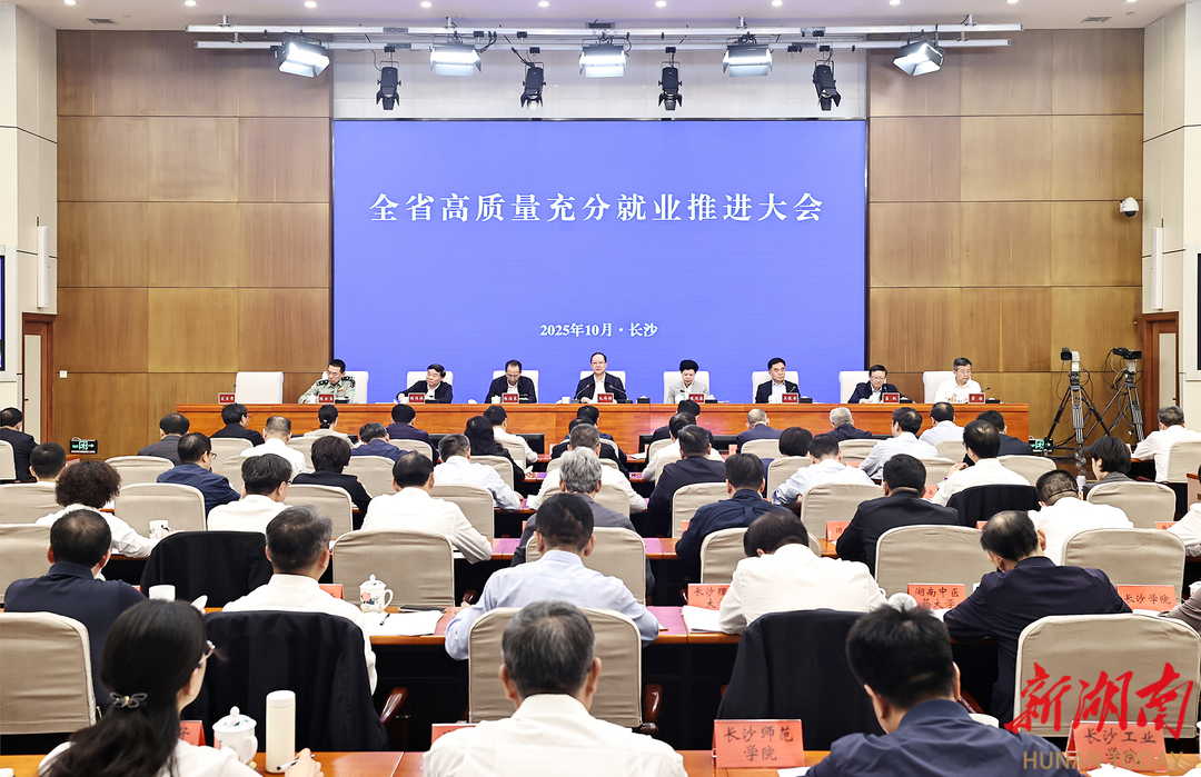 毛伟明在全省高质量充分就业推进大会上强调 强化就业优先导向 筑牢民生幸福根基 10月17日上午,全省高质量充分就业推进大会在长沙召开。省委副书记、省长毛伟明在会上强调,要深入贯彻习近平总书记关于就业工作的重要论述,全面落实党中央、国务院决策部署,在推动高质量发展中强化就业优先导向,筑牢民生幸福根基,着力稳定重点群体就业基本盘、激活创业带动就业源头水、优化服务保障就业软环境,凝聚促进就业创业的强大合力。 省领导张迎春、杨浩东、王俊寿、胡伟林,中南大学党委书记易红,国防科技大学副校长陈金宝,省政府秘书长瞿海参加。 毛伟明讲话。 在听取省人社厅和部分市县、园区、企业的就业工作情况汇报后,毛伟明指出,近年来,湖南大力落实就业优先战略,把稳就业放在“四稳”之首,强化就业优先导向、拓展就业创业空间、稳定重点群体就业、擦亮就业服务品牌,出台促进高质量充分就业27条,着力开展“智汇潇湘 才聚湖南”行动,持续做好促进高校毕业生留湘来湘就业、发展就业帮扶车间等系列重点工作,就业形势稳中向好、量质齐升。近3年全省应届毕业生累计就业138.6万人,脱贫人口就业稳定在250万人以上,零就业家庭实现动态清零。 会议现场。 毛伟明指出,要准确把握当前就业形势。清醒看到经济结构与人口结构的“双重变化”、外部冲击与内部调整的“双重挑战”、稳定存量与扩大增量的“双重压力”、市场需求与人力供给的“双重矛盾”,全力稳岗做优存量,支持创业放大增量,优化服务提升质量。 会议现场。 毛伟明强调,要切实抓好就业工作重点。锚定一个目标,即:今年要确保全年就业指标任务完成,城镇新增就业70万人以上,城镇调查失业率控制在5.5%以内,推动高质量充分就业迈上新台阶。具体要突出抓好四项工作:稳定重点群体就业的基本盘。全力促进高校毕业生就业,着力提升退役军人就业服务,统筹抓好农民工、失业困难人员和其他重点群体就业,高度重视灵活就业人员就业,以“重点稳”确保“全盘稳”。激活创业带动就业的源头水。结合智汇潇湘、校友回湘、湘智兴湘等,用好“创业在湘”等服务平台,积极引导产业回迁、项目回建、资金回投,为创业就业提供全方位支持、全领域托举、全过程保障。优化服务保障就业的软环境。进一步用好支持政策、做好供需对接、强化技能培训,发挥好就业补贴、稳岗返还、扩岗补助等政策撬动作用,完善重大项目岗位归集发布机制,推行“菜单式”技能培训模式。凝聚各方促进就业的强合力。着力构建全面抓就业的工作格局,营造全员促就业的浓厚氛围,汇聚起高质量充分就业的强大合力。 |