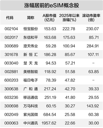 证券时报记者 梁谦刚 近日,苹果公司CEO蒂姆·库克宣布,国行iPhone Air手机将于10月22日正式发售。iPhone Air是一款完全取消了实体SIM卡槽的手机,是国内首款采用eSIM卡(嵌入式SIM卡)的智能手机。 iPhone Air在今年9月就已经全球发布,但因为当时中国大陆市场的eSIM手机业务商用许可尚未落地而未能同步开启发售。 10月13日,中国联通、中国移动、中国电信等三大运营商相继宣布正式获得开展eSIM手机运营服务商用试验的批复,并在全国31个省区市同步开通eSIM手机业务。这意味着国内手机将正式迈入“无卡时代”,eSIM技术在正式从物联网、智能穿戴领域向手机端延伸,迈入商用落地新阶段。 随着eSIM技术商用的开闸,国产品牌也正快速跟进。10月16日,OPPO宣布全新发布的OPPO Find X9系列将推出支持eSIM的版本,开售时间为今年11月。vivo、荣耀、华为都有eSIM手机相关规划。 年底总数或将突破10亿 eSIM技术将实体SIM卡功能集成到手机内置芯片中。相较于实体卡手机,eSIM有助于节省手机内部空间,推动机身设计更轻薄、提升防水防尘性能,同时在套餐切换或号码更换更为方便。 作为新事物,eSIM手机受到消费者追捧。据运营商此前披露的数据,中国移动在eSIM预约通道上线4小时内排队人数突破15万;中国联通截至10月13日晚的预约量也接近7万。 eSIM手机虽然在国内还属于新事物,但从全球范围来看,其应用已进入规模化阶段。美国依托苹果生态推动智能手机eSIM渗透率快速提升;欧洲以车联网为核心场景,受政策驱动车载eSIM出货量大幅增长;日韩则是将eSIM作为物联网基础设施,在智能表计、工业传感器等领域广泛应用。 据GSMA Intelligence预测,到2025年年底,全球eSIM智能手机连接数将达到10亿;而到2030年,这一数字将大幅增长至69亿,届时eSIM将占据全球智能手机连接总数的76%。 中金公司表示,eSIM产业链是一个涉及芯片设计制造、平台管理、运营商服务、设备集成和最终应用的复杂生态系统。随着产业链对技术研究和应用探索深入,看好eSIM产业链协同发展,加速成熟。 多家公司透露业务布局 A股市场上,除三大运营商外,还有多家公司已布局eSIM业务多年。 紫光国微在投资者互动平台表示,公司是国内首家实现eSIM全球商用的芯片商,已成功推出并量产多款符合GSMA及国内通信标准的eSIM产品,并专门针对“AI+5G+eSIM”融合应用新场景完成了技术布局与产品储备。 东信和平自主研发的嵌入式操作系统平台和eSIM物联网管理平台系列产品成功获得GSMA安全认证。 美格智能有成熟的eSIM解决方案,并且在4G/5G芯片平台上都有大规模量产。 楚天龙的eSIM相关产品与服务已通过中国联通产品备案,并积极跟进其他通信运营商的业务进展。 万马科技已经持续多年开展eSIM业务,是首个同时提供支持全系标准的eSIM方案提供商,目前已经应用在车联网领域。 概念股年内大幅上涨 二级市场表现方面,据证券时报·数据宝统计,截至10月20日收盘,今年以来eSIM概念股平均上涨42.42%,大幅跑赢同期上证指数。6股累计涨幅超50%,分别为恒宝股份、东信和平、澄天伟业、新恒汇、楚天龙、美格智能。 以最新收盘价与年内高点相比,不少概念股回撤显著,如宜通世纪、美格智能、广和通、移为通信、恒宝股份、楚天龙、福日电子等回撤幅度均超30%。 机构关注度方面,数据宝统计,合计有14只eSIM概念股获得券商机构“积极型”评级(含买入、增持、强烈推荐等),其中8股获得10家以上机构评级,包括中兴通讯、广和通、中国电信、中国移动、美格智能等。 |