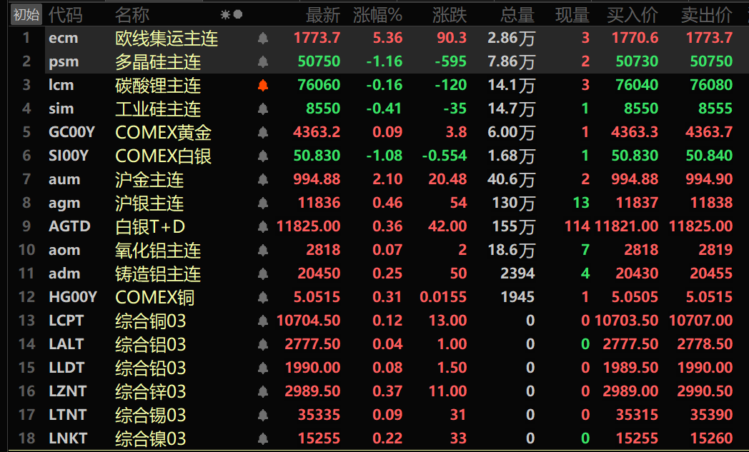 金属多飘红 沪金刷新高 多晶硅、焦煤、纽银跌逾1% 欧线集运大涨【SMM午评】 ...
