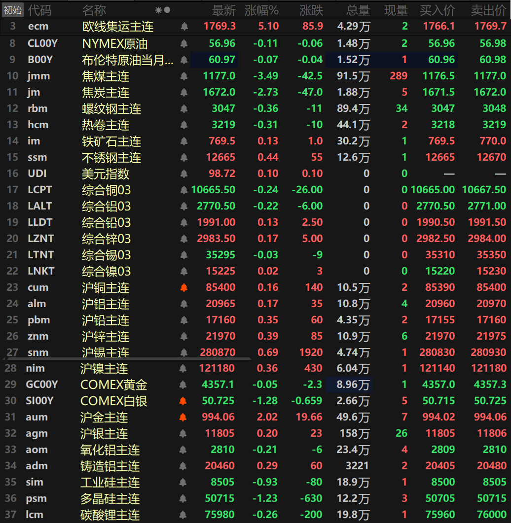 SMM 10月21日讯: 金属市场: 截至日间收盘,内盘基本金属普涨,沪锡以0.69%的涨幅领涨,其余金属涨幅均在0.5%以内。氧化铝主连跌0.21%,铸造铝主连涨0.29%。 此外,碳酸锂主连跌0.26%,多晶硅主连跌1.23%,工业硅跌0.93%。欧线集运上涨5.1%报1769.3。 黑色系方面涨跌互现,不锈钢跌0.44%,铁矿涨0.13%。螺纹、热卷一同跌超0.3%,螺纹跌0.36%,热卷跌0.31%。双焦方面,焦煤跌3.49%,焦炭跌2.73%。 外盘方面,截至15:05分,外盘基本金属涨跌互现,伦锌涨0.17%,伦铜以0.24%的领跌,伦铝跌0.22%,其余金属涨跌幅波动均不大。 贵金属方面,截至15:05分,COMEX黄金跌0.05%,COMEX白银跌1.28%。国内方面,沪金涨2.02%,盘中最高冲至1001.96元/克,续刷其上市以来的历史新高。沪银涨0.2%。 截至今日15:05分行情 》点击查看SMM行情看板 宏观面 国内方面: 【国家能源局组织召开2025—2026年度采暖季天然气保暖保供工作会议】国家能源局10月17日组织召开2025—2026年度采暖季天然气保暖保供工作会议。会议强调,各方要坚持底线思维、居安思危,充分考虑外部环境和国际市场不确定性以及近年来极端气候频发形势,进一步做细做实各项工作和应急预案,切实保障群众温暖过冬。会议围绕加强北方地区采暖和民生用气保障、加强气电协同联动服务能源电力保供、加强安全运营和保供风险点排查处置、回应社会关切提升天然气市场竞争力、强化企业间互济互保等方面细化了采暖季工作安排和任务要求。 【央行公开市场今日净投放685亿元】央行今日开展1595亿元7天逆回购操作,操作利率为1.40%,与此前持平。因今日有910亿元7天期逆回购到期,当日实现净投放685亿元。 ►10月21日银行间外汇市场人民币汇率中间价为1美元对人民币7.0930元 美元方面: 截至15:05分,美元指数上涨0.1%报98.72,据央视新闻客户端,当地时间10月20日,美国参议院第11次就政府拨款法案进行投票表决,仍未获得通过。该法案原计划将政府资金延长至11月21日,最终以50票赞成、43票反对未达通过所需的60票门槛。不过,美国国家经济委员会主任哈西特表示,已持续20天的美国联邦政府关门有望在本周结束。后续仍需跟踪美国临时拨款法案能否通过。 由于美国联邦政府停摆,最近美国多份经济数据被迫退出出炉,受停摆带来的负面拖累影响,市场对于美国经济的担忧持续存在,此前美联储多位官员支持10月继续降息,目前市场对于美联储继续降息两次押注较高。(文华综合) 宏观方面: 今日公布澳大利亚截至10月19日当周ANZ消费者信心指数、加拿大9月未季调CPI年率、加拿大9月未季调CPI月率、加拿大9月核心CPI-普通年率、加拿大9月央行核心CPI月率、加拿大9月核心CPI-普通年率等数据。 此外,还需关注二十届四中全会于10月20日至23日召开;美联储举行支付创新会议,讨论稳定币、人工智能和代币化;亚太经合组织(APEC)财长会议举行,至10月21日;日本举行首相指名选举。值得注意的是:非农数据发布具体日期还没有确定,由于美国政府停摆还在持续,截至目前进行的十一次临时支出法案投票均未获通过,目前长期停摆的风险加大。 原油方面: 截至15:05分,两市油价一同下跌,美油跌0.11%,布油跌0.07%。因担心供应过剩以及贸易紧张局势对需求造成风险。 Ritterbusch and Associates在一份报告中称,近期原油交易立场仍然看跌,倾向于在价格上涨时卖出,而不是在价格回落时买入。他们补充称:“但我们也认为,地缘不确定性仍足以偶尔抵消日益负面的石油平衡。” 美国石油协会(API)将于北京时间周三04:30发布行业版周度库存报告,美国能源信息署(EIA)将于北京时间周三22:30发布官方库存报告。周一的初步调查显示,受访五家机构的平均估值,截至10月17日当周,美国原油库存料增加约150万桶。 油价下跌的部分原因也在于国际能源署(IEA)上周发表的看跌前景报告。该报告预计,随着欧佩克 产油国和竞争对手提高产量,而需求依然低迷,2026年全球市场可能每天有近400万桶的石油过剩。 俄罗斯国家石油公司(Rosneft,俄油)控制的伏尔加地区Novokuibyshevsk炼油厂在遭到无人机袭击后于周日停止了原油初加工。围绕俄罗斯石油供应的不确定性依然存在,此前特朗普重申,除非印度停止购买俄罗斯原油,否则印度将继续支付“巨额”关税。此前在西方对莫斯科实施制裁后,印度已成为俄罗斯打折石油的主要买家。(文华综合) SMM日评 ►【SMM MHP日评】10月21日 MHP钴报价系数持高不下 成交系数持稳 ►电解锰成本供应双支撑,上涨预期升温【SMM电解锰日评】 ►市场询单情况改善 镨钕价格止跌企稳【SMM稀土日评】 ►银价高位盘整 现货升水居高不下【SMM日评】 ►【SMM氢气成本日评】20251020 |