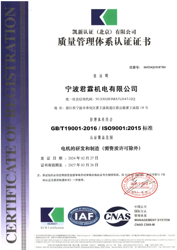 宁波君霖机电有限公司,位于宁波奉化,具有年产机电类组件800万套的生产能力。是一家专业研发、制造、销售交流感应电机、交流串激电机、直流无刷电机的科技型企业。数字化系统有EPR、MES、WMS,对关键工序进行全流程管控,时时对生产效率和不良率进行监控,通过看板和数据分析进行管理提升和改善。 公司以技术革新为驱动力,以精益生产为核心竞争力,稳定的质量保障,为客户提供精准、高效的解决方案,满足客户不断升级的产品需求。产品能提供的配套领域:水泵类、清洗机类、吸尘器等小家电类、园林工具、电动工具、锂电类工具等产品的原动力。 公司具有强大的研发团队、独立的现代化实验室、一流的自动化生产线、先进的制造工艺,快速的反应团队,以优质的产品,超值的服务,超越客户的期望!