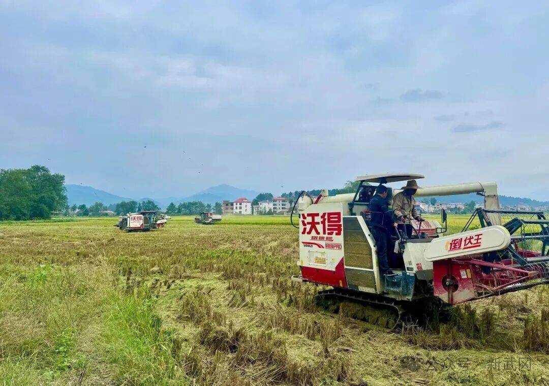 金秋时节,武冈市26.3万亩晚稻迎来丰收,进入全面收割期。各地农户正抢抓晴好天气,组织机械加紧收割,确保颗粒归仓。田野间稻浪翻滚、机声隆隆,呈现出一派繁忙的丰收景象。
