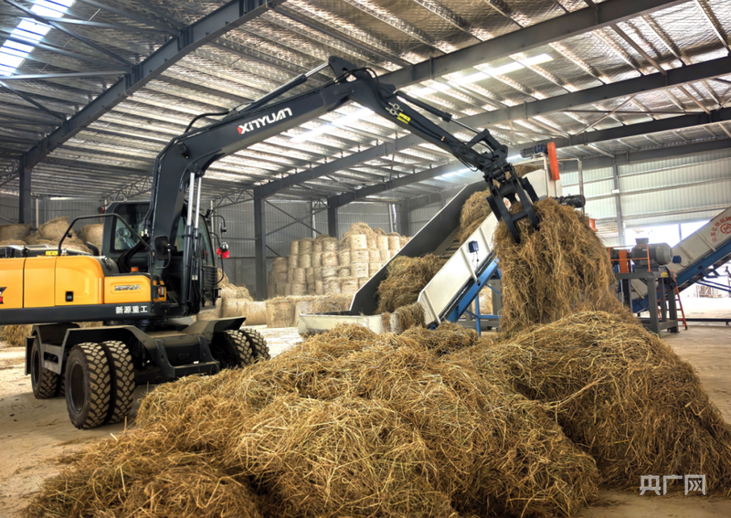 打捆机正将一把把秸秆“喂”进仓储中心(央广网发 何佳达 摄) 因势利导培育主体,湘潭县按照“企业主导+经纪人参与”模式,培育湘潭定邦农业、伟胜农机等5个专业化收储组织,鼓励农机手兼职“秸秆经纪人”,上门为农户打捆收运。目前,全县已有30余名稳定的秸秆经纪人,形成“田间—经纪人—收储中心”的就近回收网络 在技术赋能上,湘潭县因情施策,针对平原与山丘地形差异,引导主体配置大马力打捆机(平原)和小型粉碎机(山丘),不断完善“打捆-清运”“粉碎-清运”等田间收集模式,一体化满足不同地形、不同作物差异化秸秆回收作业需求。 “三级网络”顺畅了流通,运输问题如何解决呢?湘潭县以“仓储为点、道路为线”,构建起覆盖县乡村的秸秆流通体系:依托原有4万平方米县级仓储基地,2024年在8个乡镇新建15个标准化收储中心,每个中心配套3个以上村级收储网点,要求收储中心年收储量不低于2000吨、村级网点不低于500吨,2024年,湘潭县外销秸秆3万吨以上,占全年收储总量的50%,秸秆运输成本平均下降20%。 以“利用闭环”破解“价值难” 让秸秆变身有“路径” 聚焦“基料化、原料化、饲料化”三大路径,湘潭县推动秸秆从“初级利用”向“产业增值”跨越,实现“一根秸秆撑起产业,一串链条能富一方”的效果。
