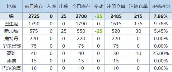 》查看更多金属库存信息