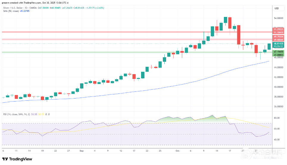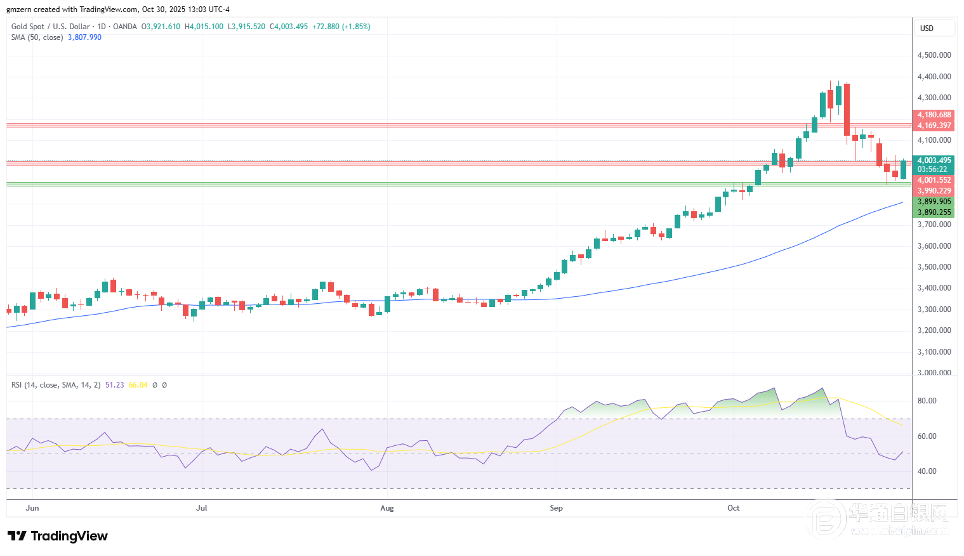 | 【华通白银网10月31日讯】•金价反弹至4000美元水平。 •由于贵金属需求上升,白银上涨2.5%。 •铂金攀升至1600美元水平。 黄金