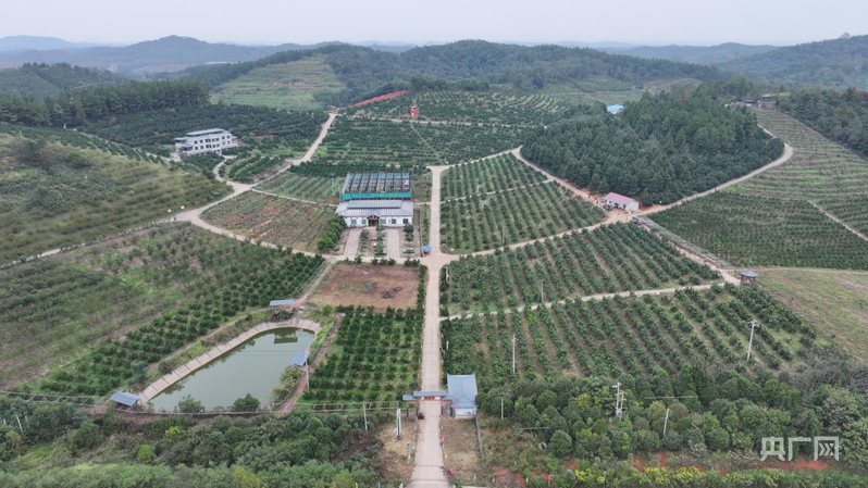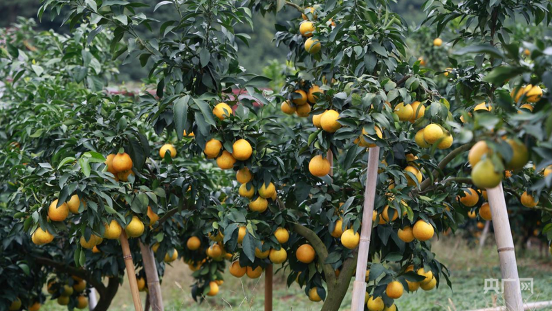 航拍果园全景(央广网发 周艳梅 摄) 走进果园,漫山遍野黄澄澄的果实缀满枝头,空气中弥漫着沁人心脾的果香。色泽金黄、圆润饱满的爱媛果冻橙簇拥成景,散发出阵阵清香。游客们手提果篮、手持剪刀,穿梭于果树之间,尽情体验采摘的乐趣。