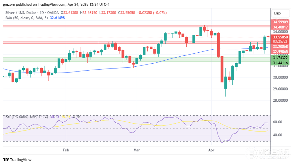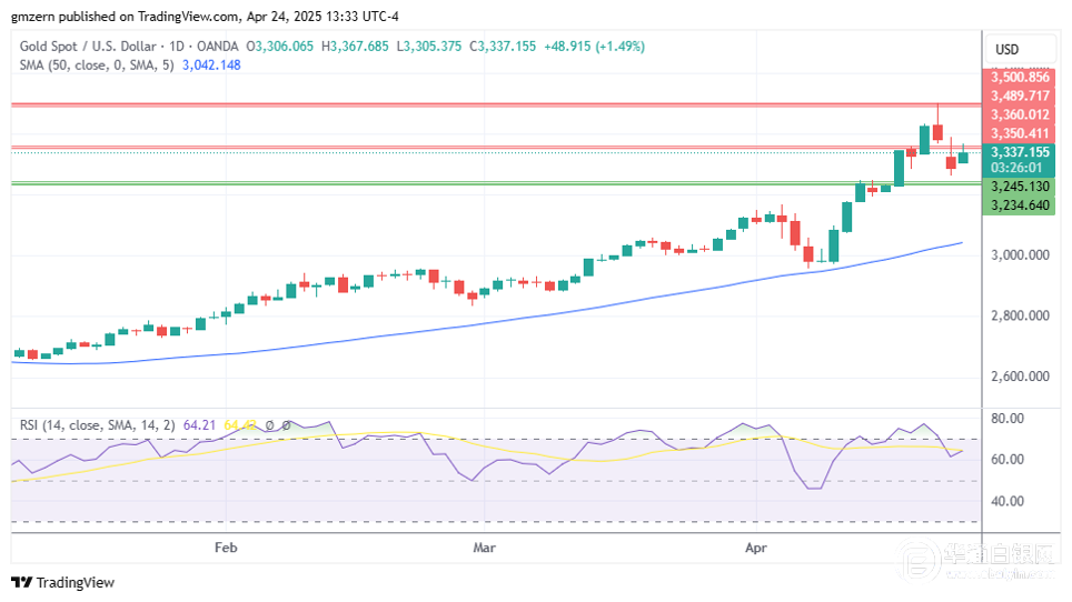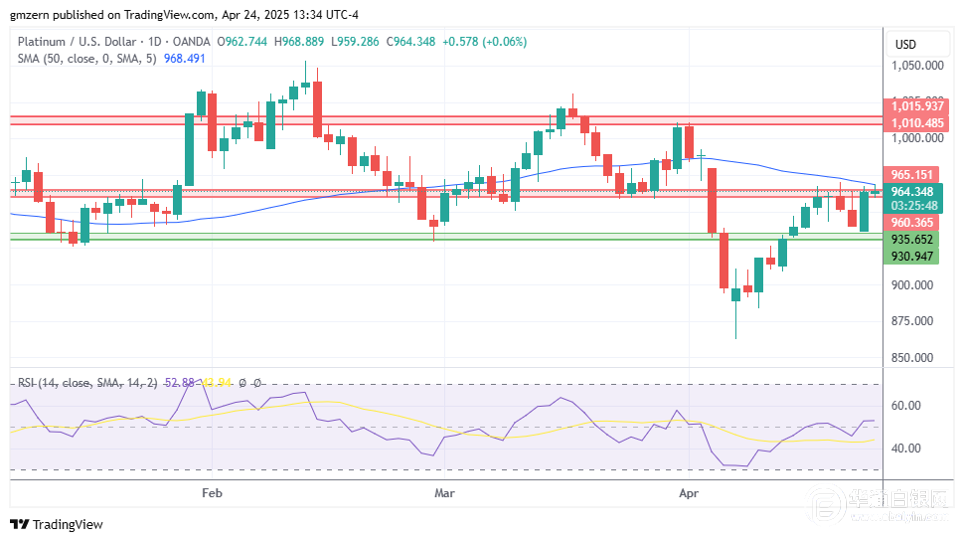 【华通白银网4月25日讯】•金价回到3300美元上方。 •银价基本持平,因交易商获利了结。 •铂金继续尝试在960-965美元阻力位上方收稳。 黄金