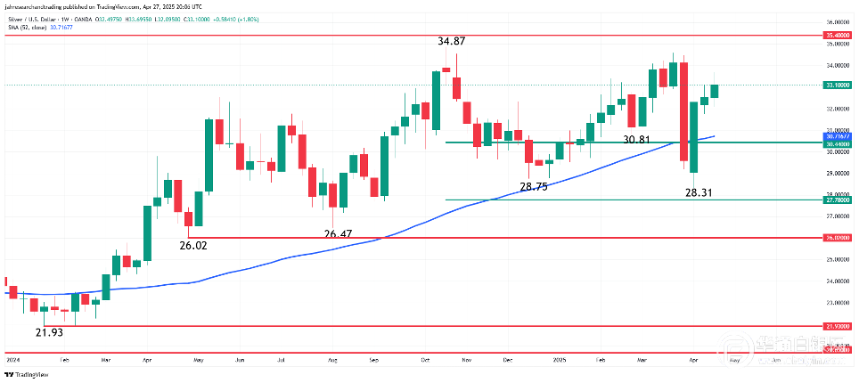 (白银周线图) 从技术面来看,银价在52周移动均线30.72美元的看跌区间停留了一段时间后,收于强势位置。这是新的支撑。 周线图显示在34.59美元到34.87美元之间有很好的市场机会。然而,需要催化剂来实现这一目标。 政治动荡和来自美联储的压力推高了对硬资产的需求 本周早些时候,特朗普公开攻击美联储主席鲍威尔,称其为“大输家”,并要求大幅降息,引发市场恐慌。这引发了人们对美联储独立性的担忧,导致股市下跌2.4%,并提振了贵金属的上涨势头。尽管特朗普后来向市场保证,他没有解雇鲍威尔的计划,但对投资者信心的损害已经造成,这有助于白银保持上涨趋势,而黄金则有所降温。 金银比显示出强劲的上升潜力 白银看涨前景的一个重要信号是金银比,上周金银比飙升至105以上,这是自新冠早期以来从未见过的极端水平。从历史上看,当这个金银比高于100时,银价将大幅上涨,因为市场正在努力纠正这种不平衡。分析师指出,在上一个峰值之后,白银的表现是黄金的三倍。随着长期平均价格接近60,白银价格的大幅折扣吸引了那些重视并正在寻找追赶潜力的买家。 贸易紧张局势的缓和提振了白银行业的需求前景 最初抑制白银行业需求前景的贸易战担忧在本周中期开始缓解。特朗普收回了他强硬的关税言论。财政部长斯科特·贝森特表示,目前的关税是不可持续的。金价下跌将支撑白银的工业需求,尤其是在科技和可再生能源领域。 供应紧张支撑了长期看涨的观点 现货市场的紧缩增加了白银的吸引力。世界白银协会预测,明年全球将出现1.17亿盎司的短缺,这将是连续第五年出现短缺。在绿色能源投资的推动下,持续的供需失衡为油价提供了根本支撑。预计库存将继续下降,即使在市场波动期间也将建立坚实的基础。 展望:白银将持续走强 展望未来,白银仍然具有建设性。极端的金银比、贸易局势、美元疲软以及持续的供应赤字,都指向进一步的上行空间。交易商应关注美元的持续疲软和任何与美联储有关的消息,以判断短期动能。白银的货币和工业吸引力,加上其相对于黄金的估值被低估,将为未来一周提供强劲的风险回报前景。 白银网 |